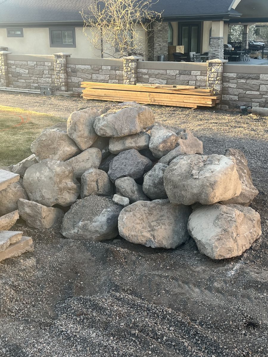 Landscaping and retaining wall rocks ranging from 1’ -3+’ in diameter. You will need to bring equipment to load up and haul off. I do have a skid steer that I can use to help load in a dump type trailer but it will not load them up gently. Free to anyone who can bring the eq to haul off.
