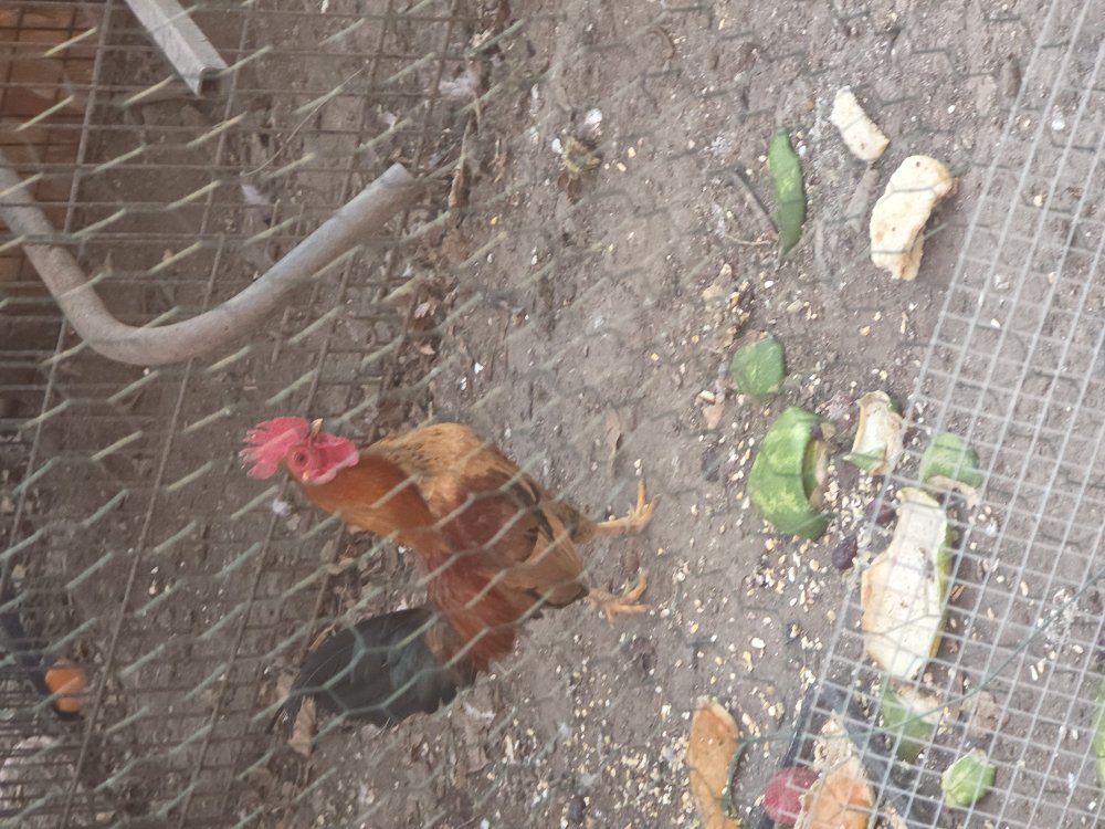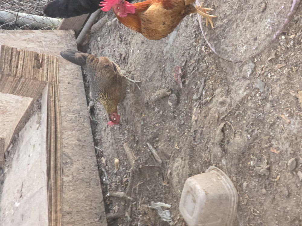 2 tiny roosters that won't grow anymore only 1.5 year old beautiful looking with 1 chicken that is laying eggs only 2 years. and things you need for chickens that need cleaning