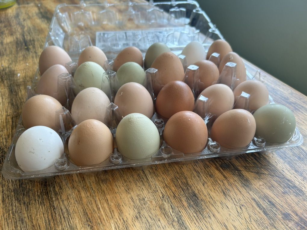 Venmo$4 a for dozen eggs. the chickens are free range in our yard. Message me if you’re interested or have any questions!