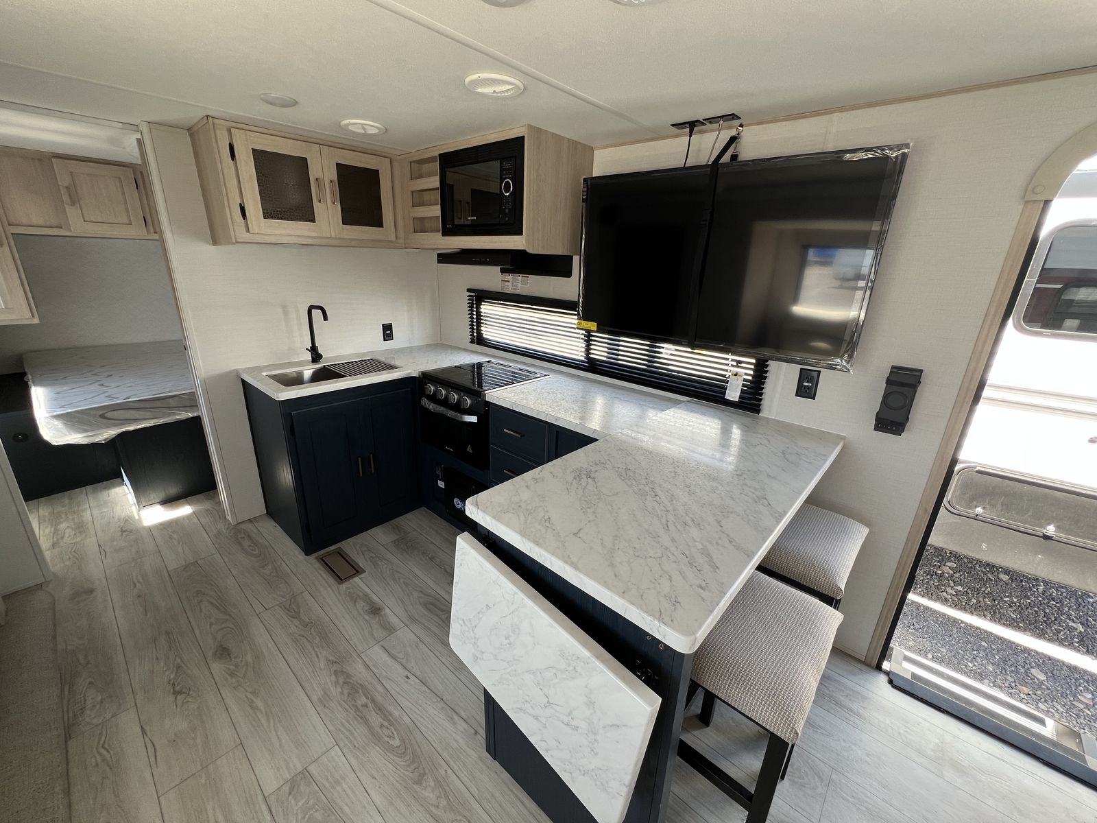Outside, you’ll enjoy an electric awning with LED lighting, outdoor speakers, and pass-through storage for all your gear. Lightweight yet durable, the Avenger 25MKO is easy to tow and perfect for couples or small families looking for adventure without compromise.