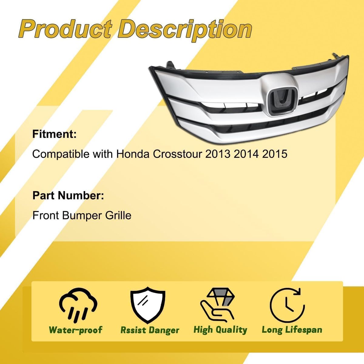 ApplePayFit for Honda Crosstour 2013 2014 2015 Upper Vent Hood Front Bumper Grille Silver