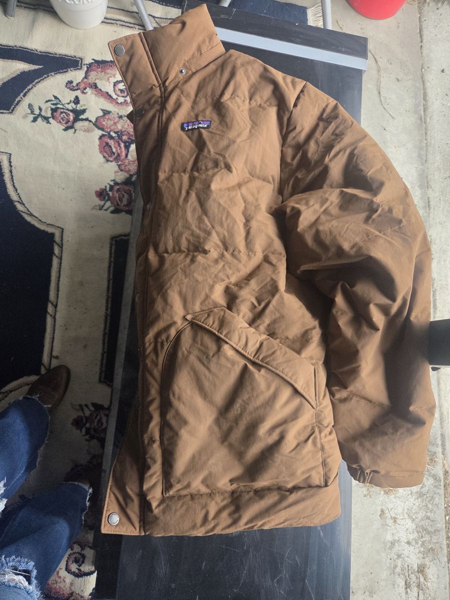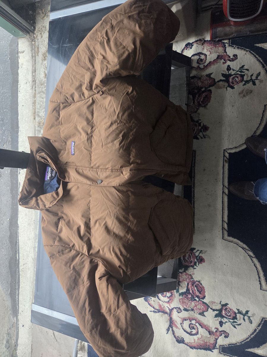 VenmoAuthentic Patagonia men's XXL brown insulated quilted jacket. Made with NetPlus® recycled nylon from discarded fishing nets (eco-friendly – helps reduce ocean plastic pollution!). Super warm synthetic insulation, perfect for fall/winter layering, casual wear, or outdoor adventures.