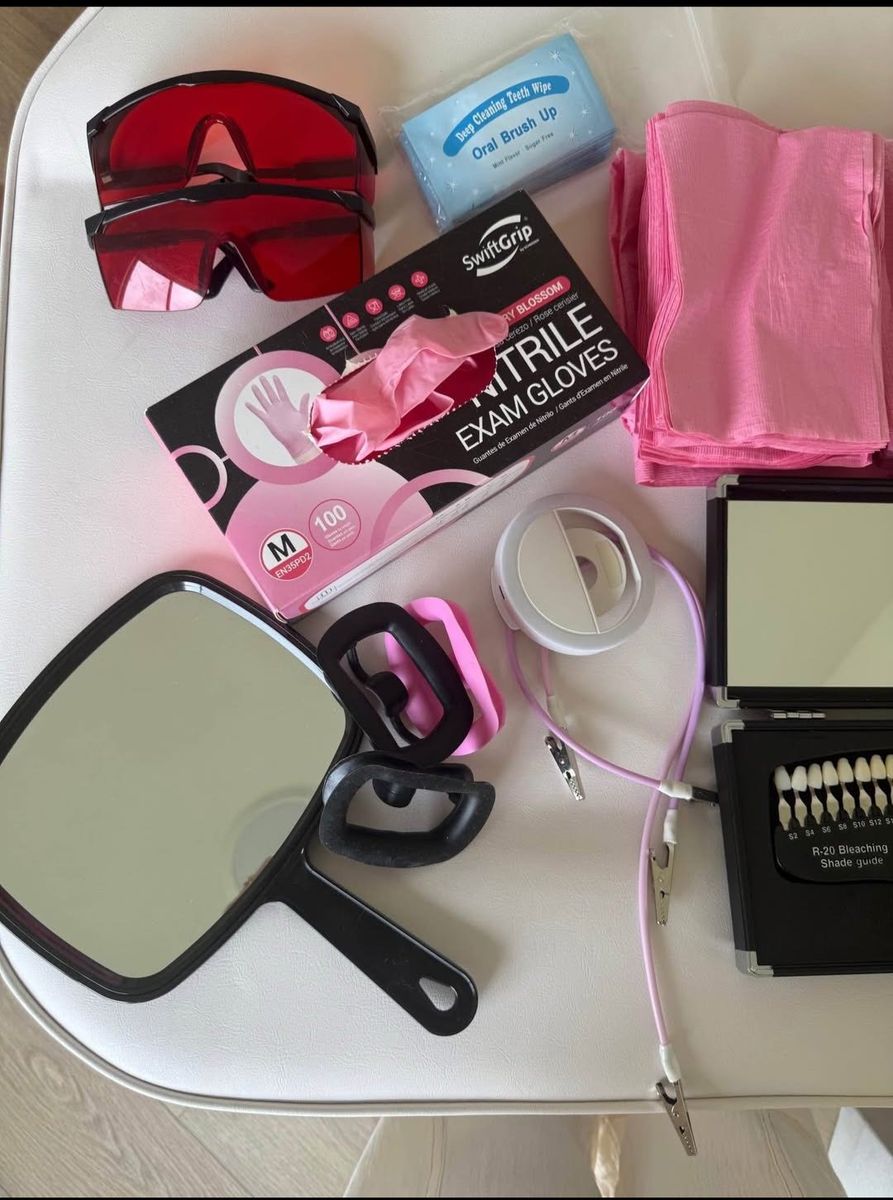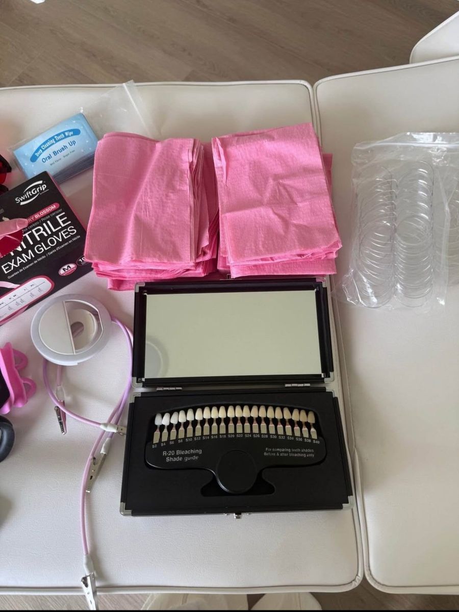 CashAppWanna start a teeth whitening business? This is the full set up! Chair, Stool, teeth whitening light, mini fridge ( to keep your teeth whitening pens cool ) dentist bibs and clips, pink gloves, mirrors, red sunglasses, ring light, reusable dental teeth retractor and also disposable ones! Only thing you need is the teeth whitening pens and your ready to go! Everything you see in the picture is included! Only reason I’m selling is I having medical issues,But the profit is unreal! You can charge $150 or more for each session!