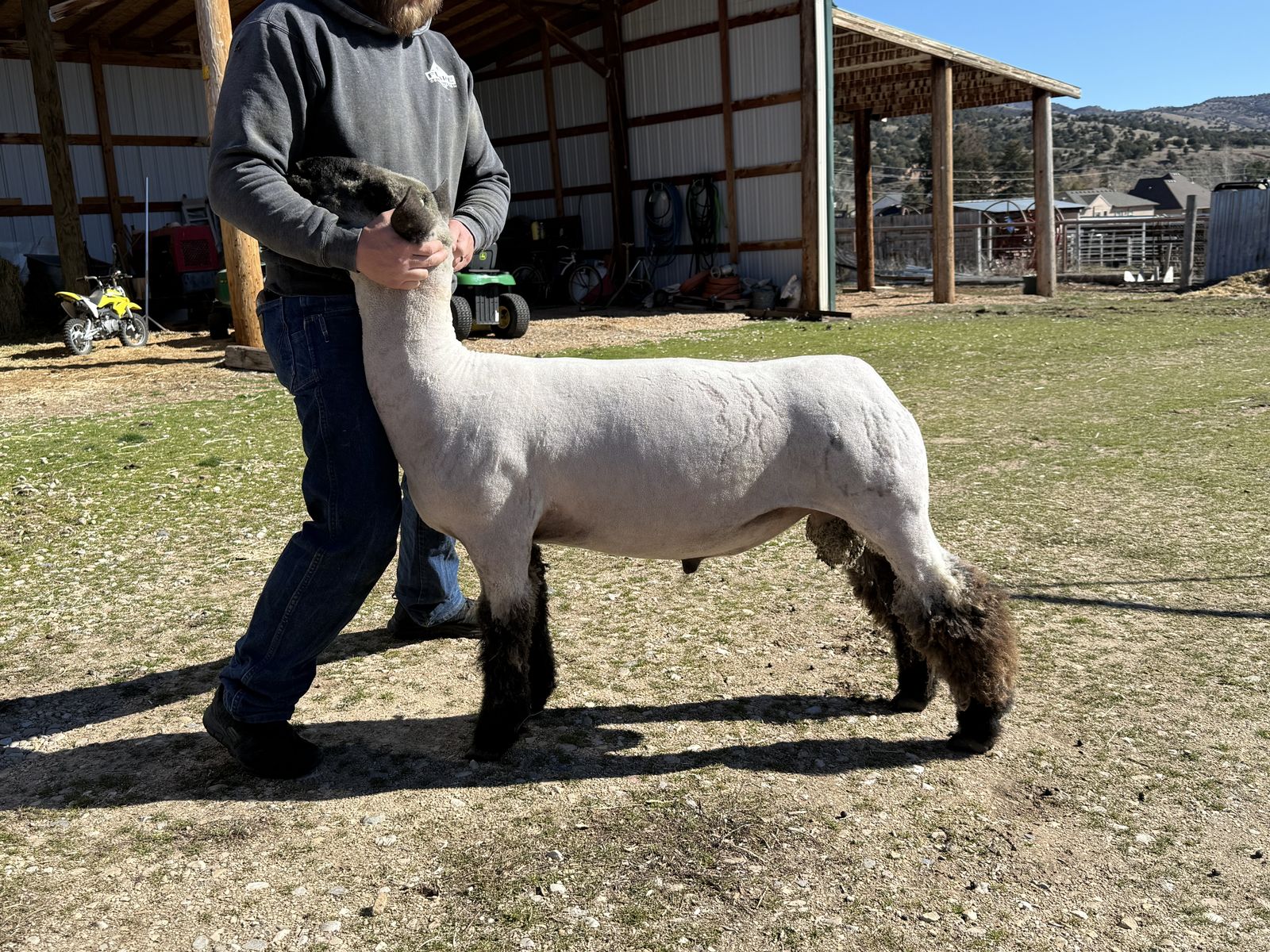 VenmoNeed to get him sold make me an offer I didn’t get any pictures of his offspring before I listed him but he will add frame to your lambs!! He is a November 2024 born. Can still be handled easily my 11 yr old daughter can handle him His breeding is listed in the photos along with the write up from the sale I got him on we got him from the ellerbrocks in Illinois Only reason we are selling him is the property we are not able to lease the property we have him on any more so we are having to sell our breeding stock