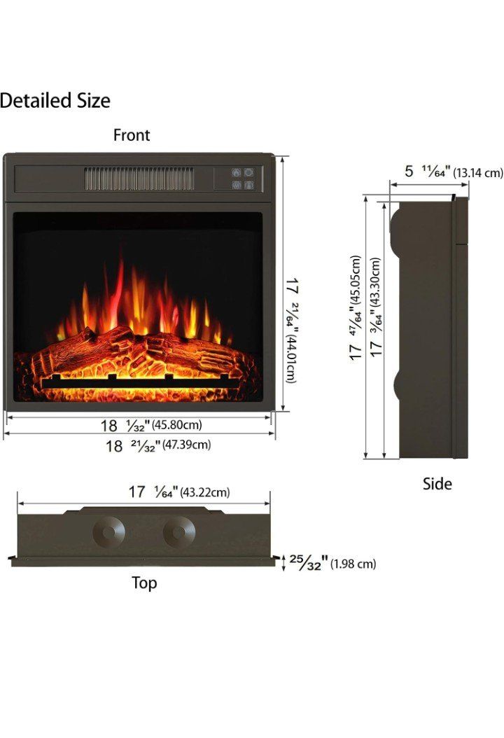 New in box 18" Electric Fireplace Insert, Recessed Fireplace Heater with Low Noise, Remote Control with Timer, Touch Screen, Adjustable Flame Brightness, 18.6" L *17.7" H