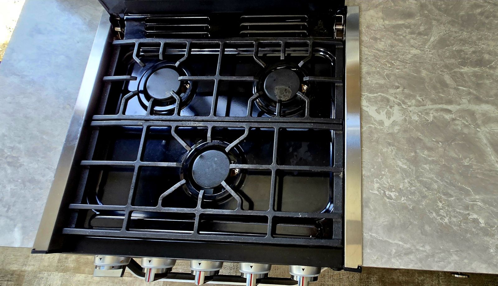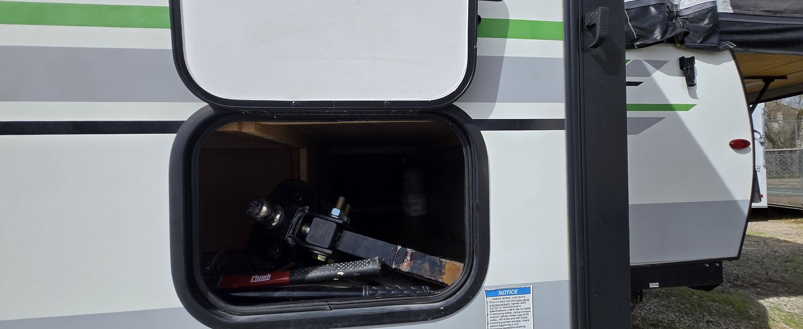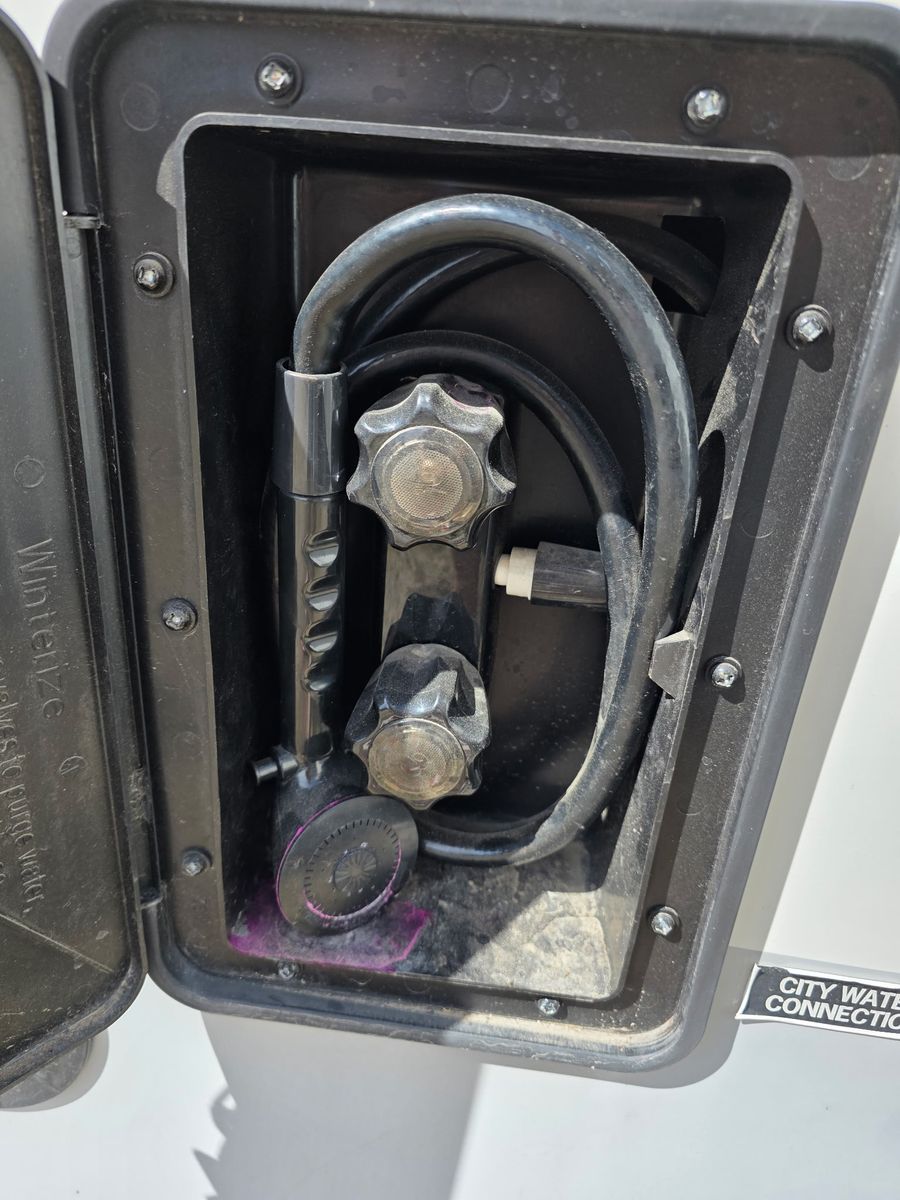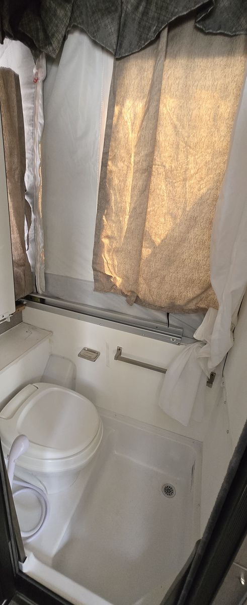 This camper is fully self-contained but also supports full hookups (water, sewer, electric), making it perfect for both off-grid and campground camping.