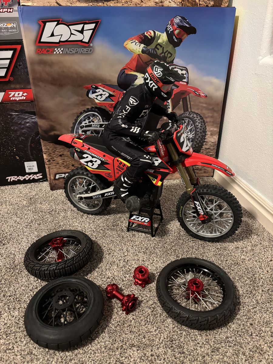 Selling my losi promoto. This thing is a blast! Selling to fund other projects or open to the right trade. Also included with the price are proline upgrades worth a couple hundred. Message with any questions!