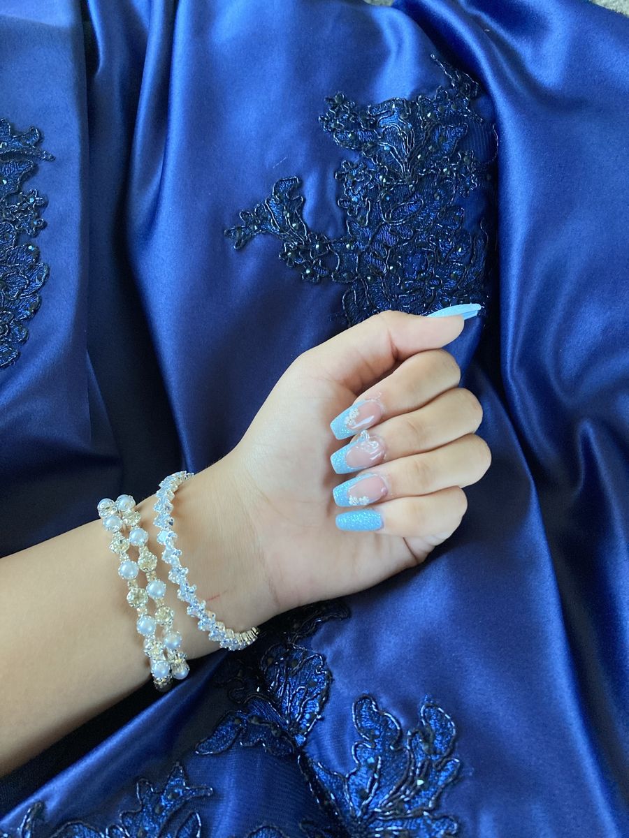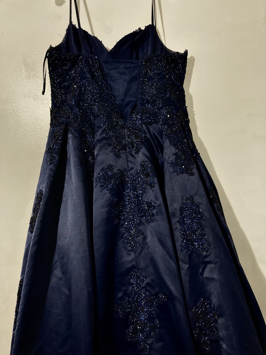 CashAppnavy blue evening gown with a sweetheart neckline and lace applique details, size XL