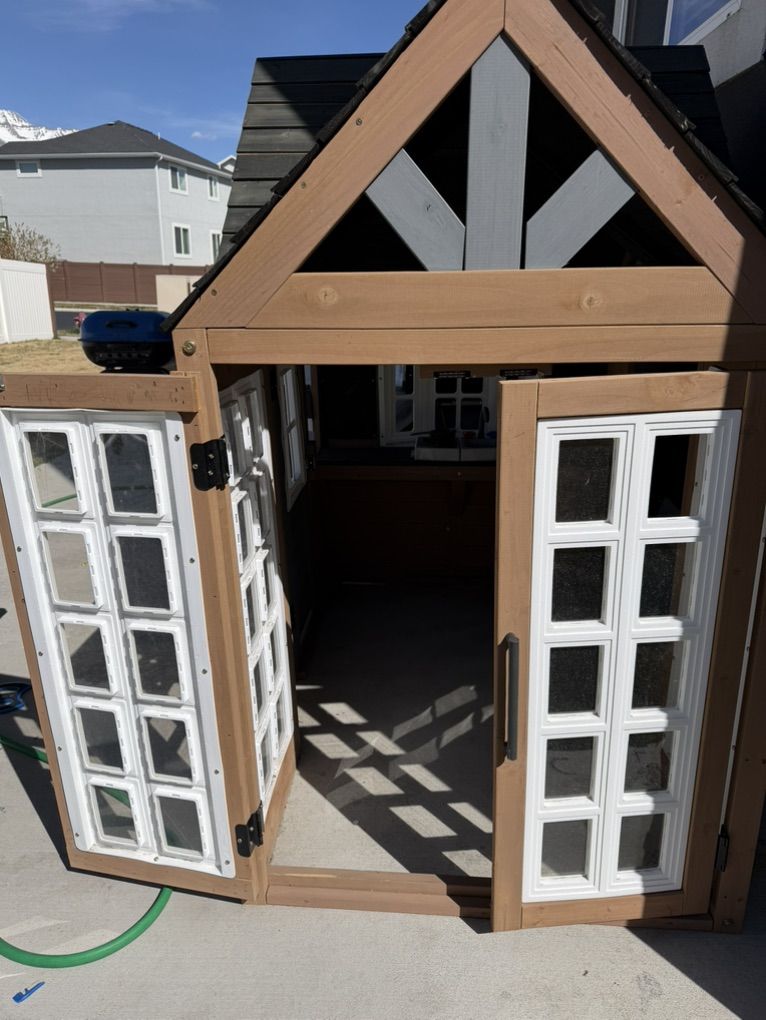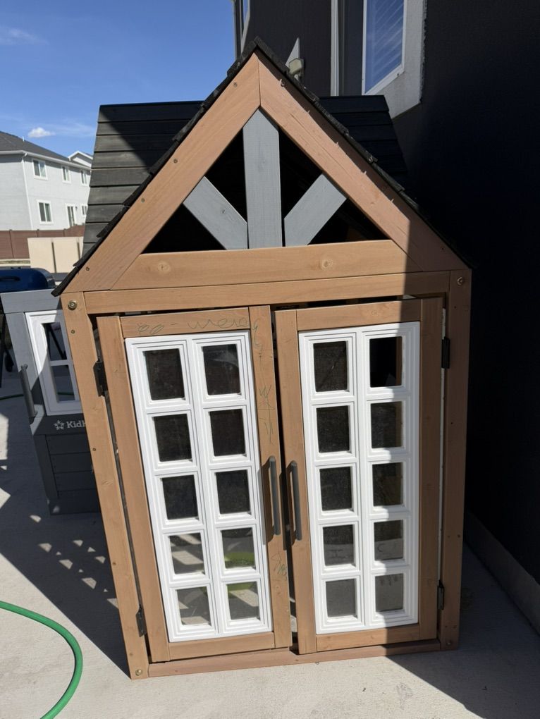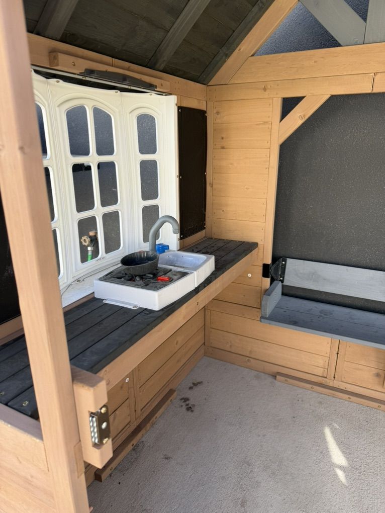 Outdoor kidkraft playhouse. Bought this and put it together July 2025 not even 1 year ago. Great condition just don’t have the space for it anymore. This is sold out at Costco for $300. Asking $250 my loss is your gain and it’s already assembled!