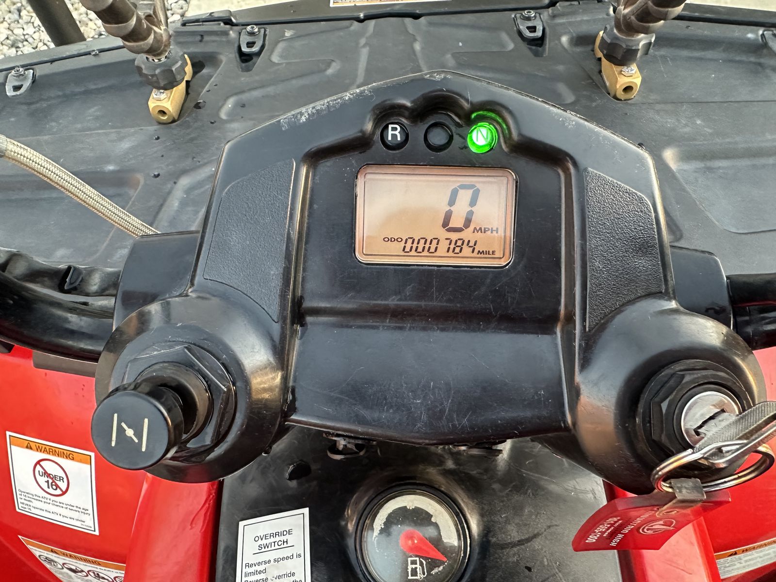 Features include automatic transmission, electric start, good tires, and clean plastics. Seat and racks are in very nice condition.