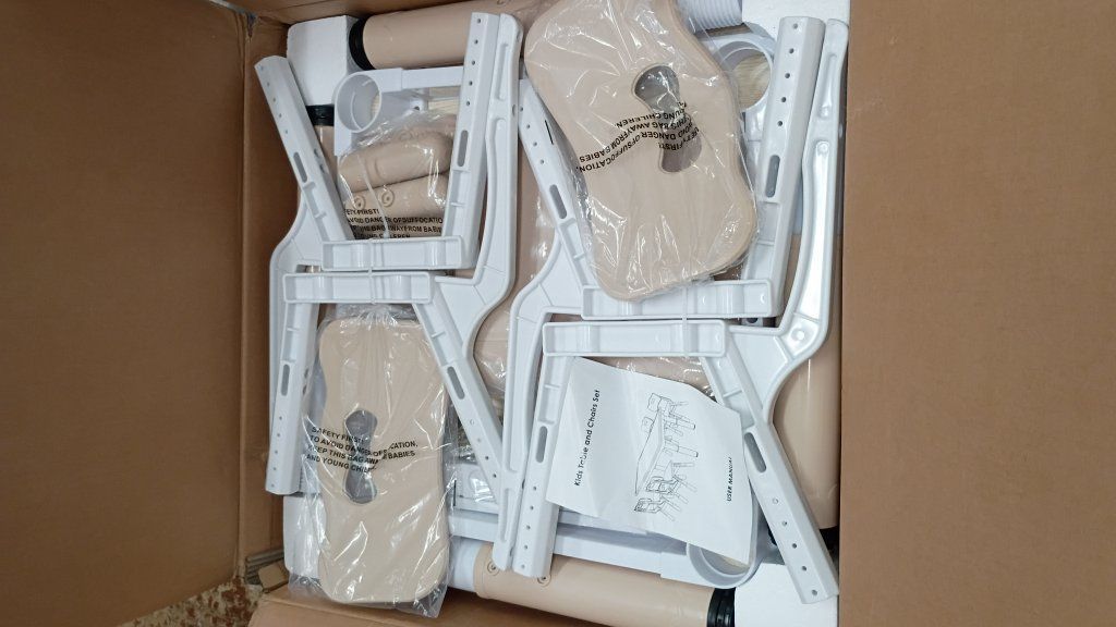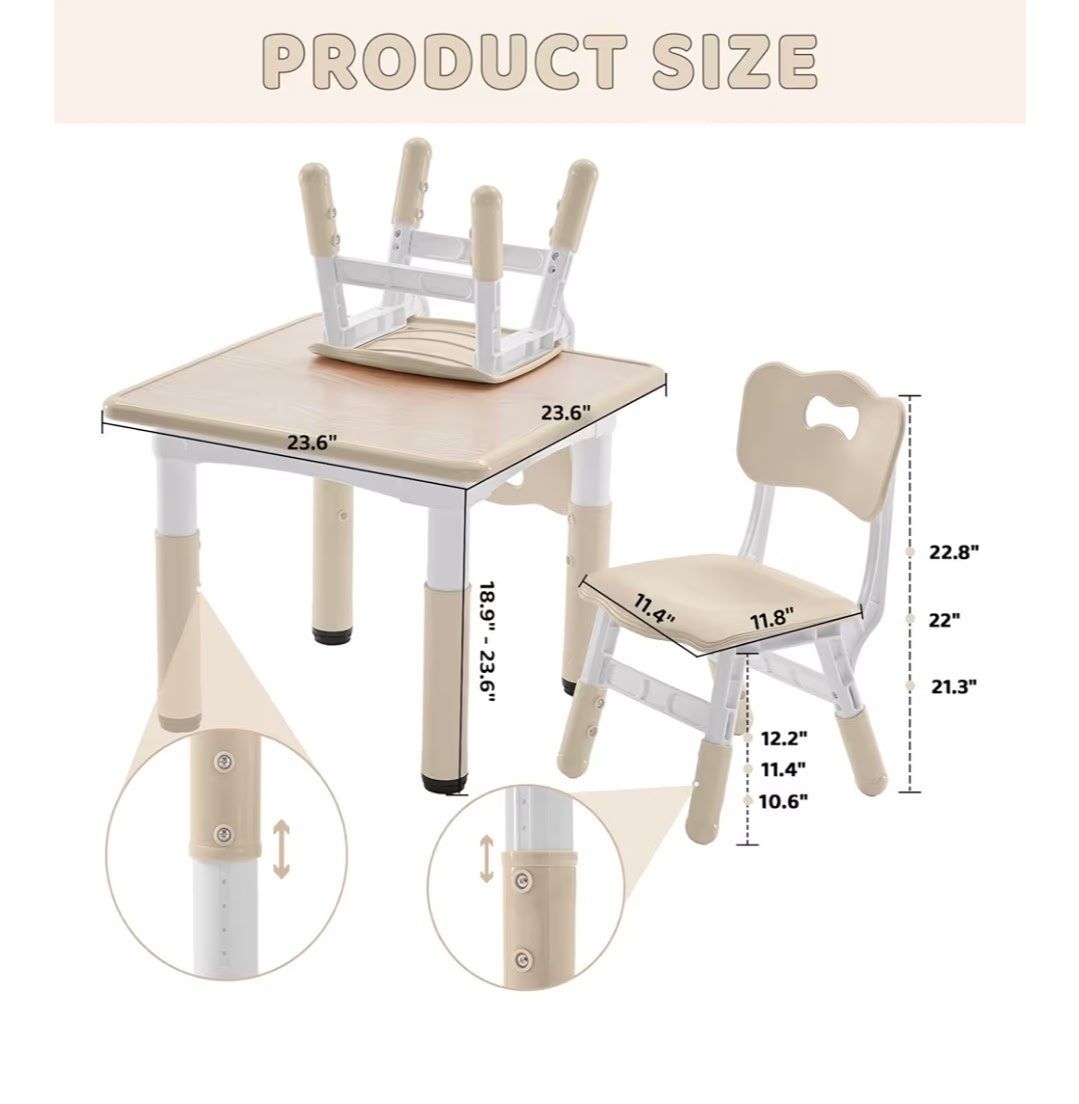 New in box FUNLIO Kids Table and 2 Chairs Set for Ages 3-8, Height Adjustable Toddler Table and Chair Set, Easy to Wipe Arts & Crafts Table, for Classrooms/Daycares/Homes, CPC & CE Approved (3pcs Set)