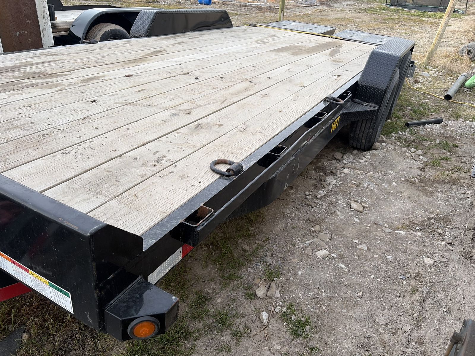 Venmo21’ equipment trailer with mega ramps, makes for easy loading of all types of equipment. Has rearstabilizing jacks as well heavy duty 14 ply tires and spare. Two binders and two new chains included.