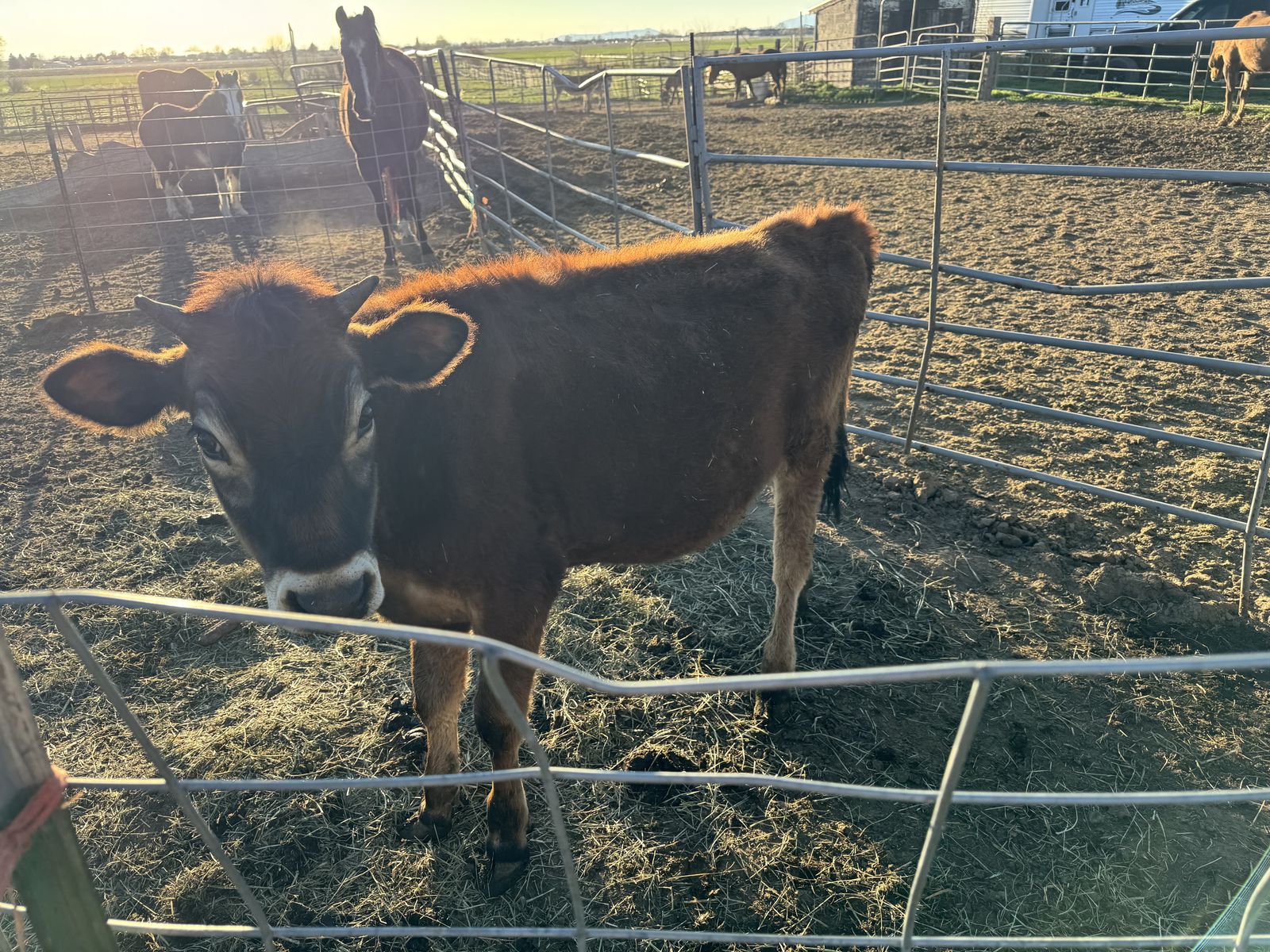 Jersey steer starting to get big and put on weight I’d guess he’s between 500-600 pounds he’s been on grass grain alfalfa and silage should be very tasty! He should be ready to butcher in 8 months or so