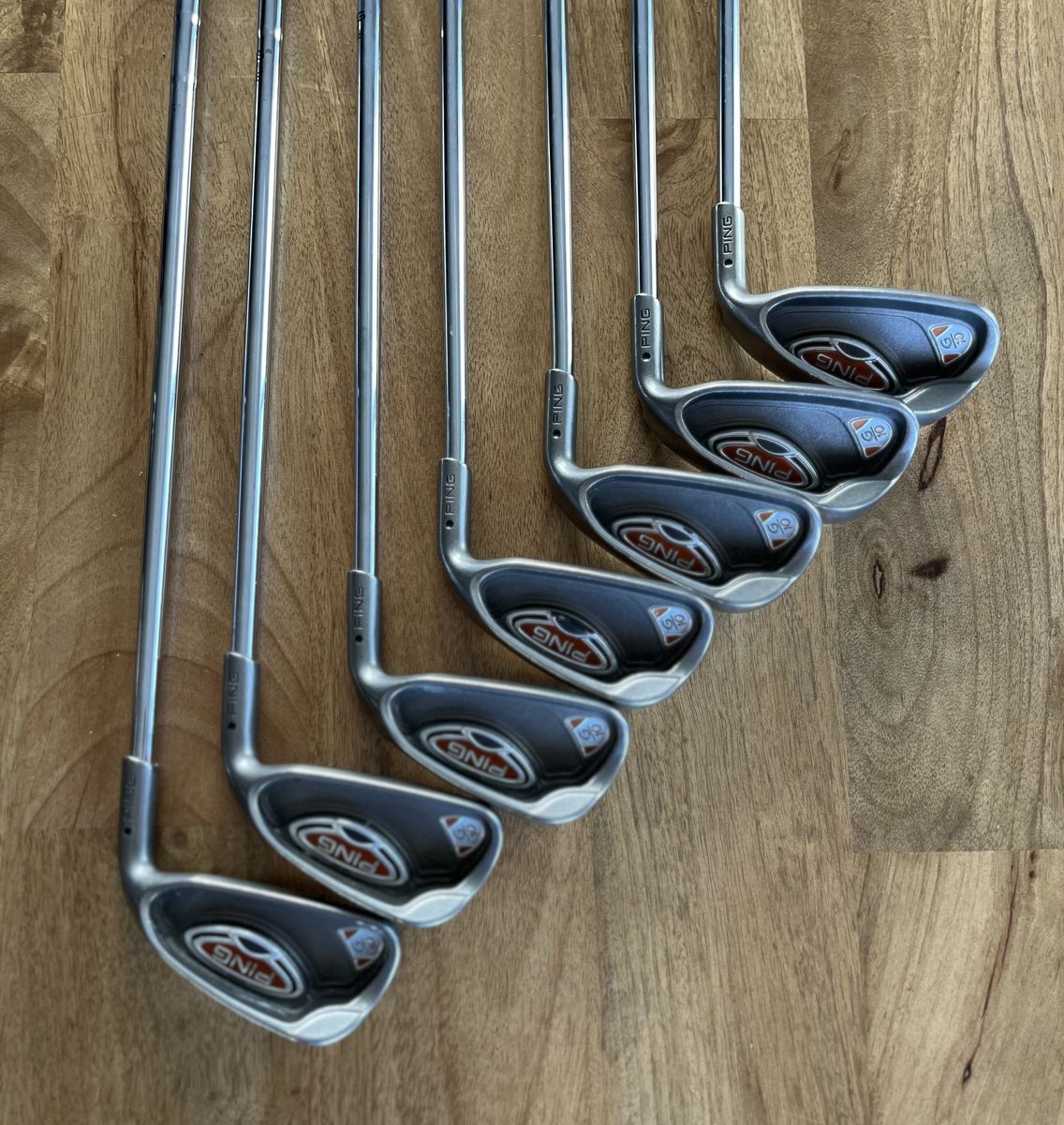 Details 4 through PW Stiff flex shafts Black dot standard lie Original Ping grips in good condition Overall condition is very good with normal wear.