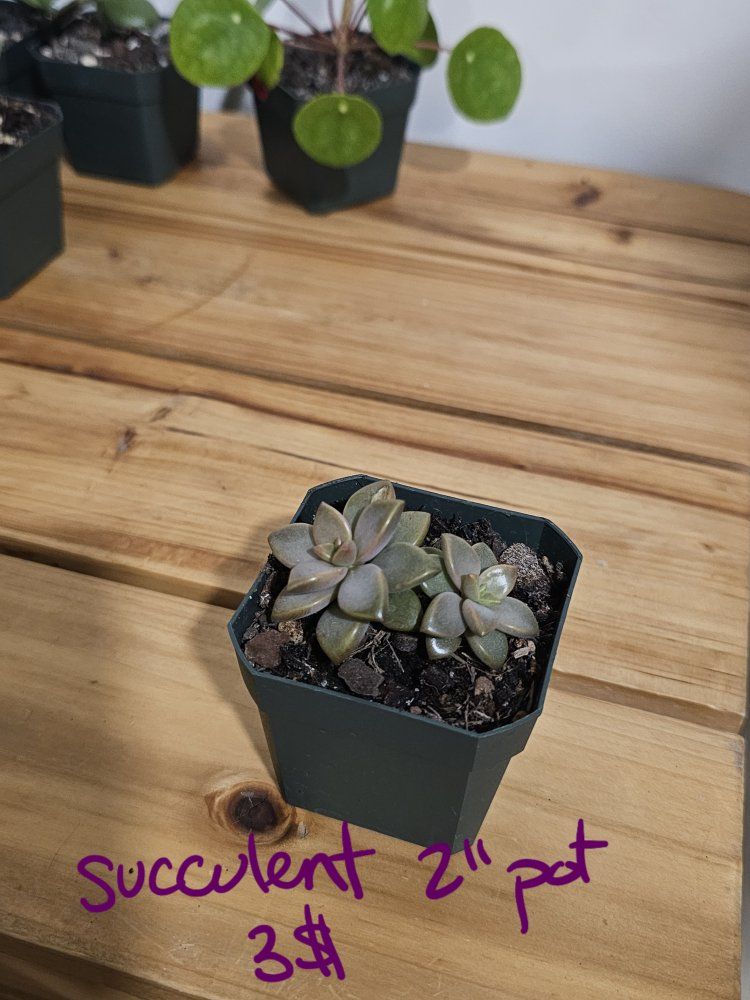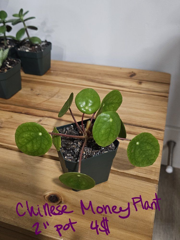 CashAppJade- 2 available, 2" pot, 4$ each Snake Plant Laurentii- 4" pot, 8$ Snake Plant Bonji- 3 available, 2" pot, 8$ each Chinese Money Plant- 2" pot, 5$ Succulent- 2" pot, 3$