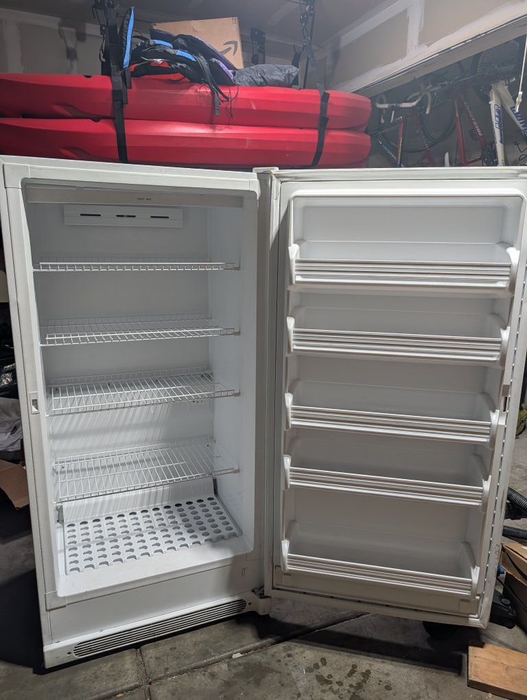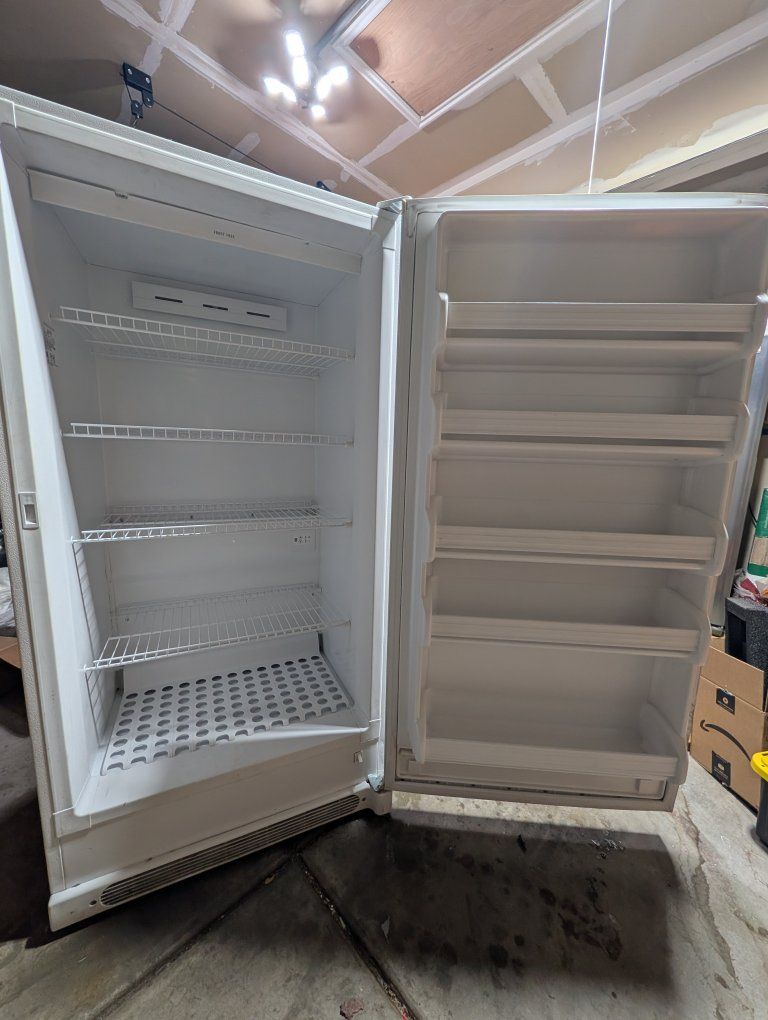 VenmoVertical Frigidaire freezer 17 gallon vertical freezer Never a seconds problem works great I just don't need it has been in a garage so it had a few small dents and a little bit of paint missing off the top
