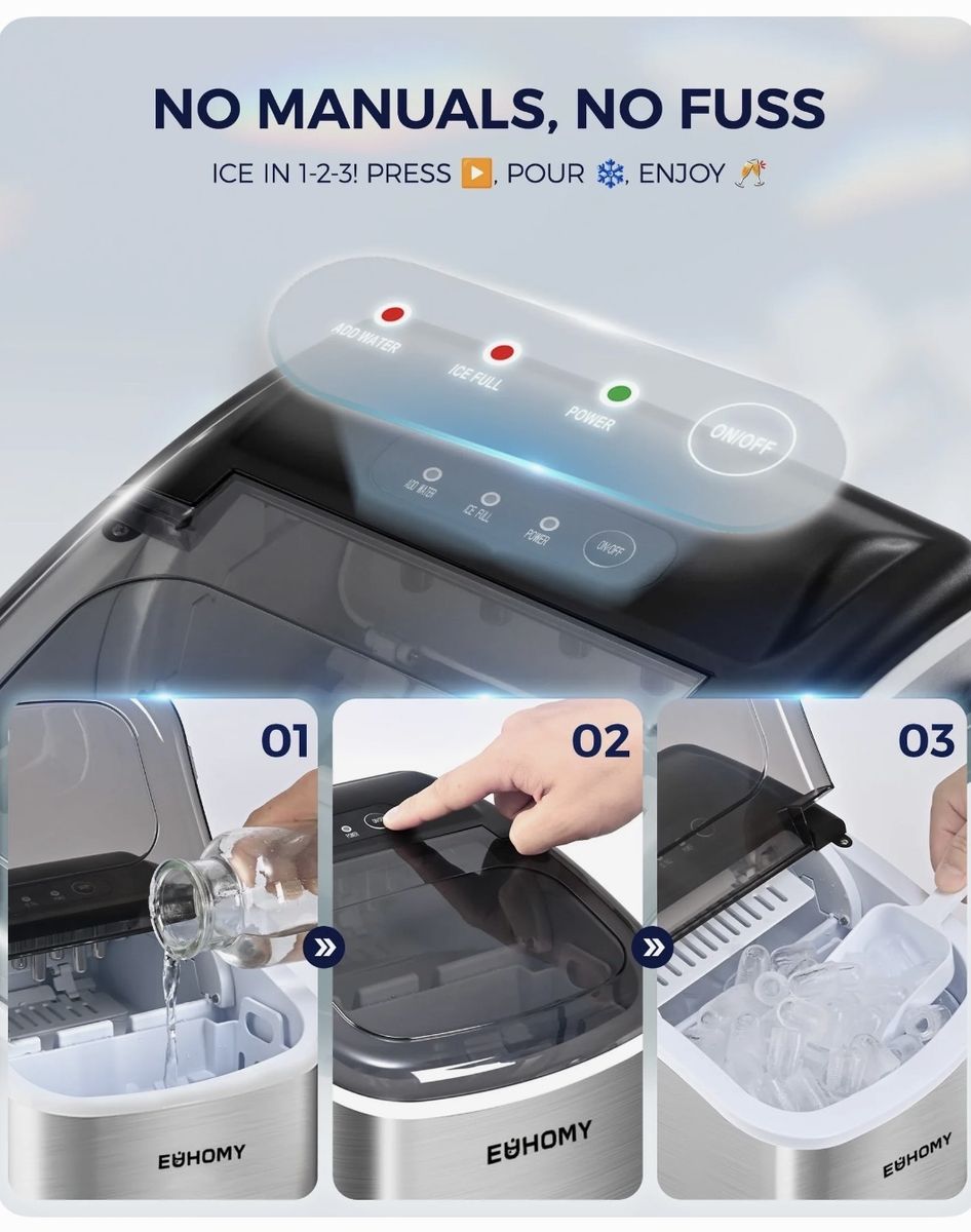 Barely used and works perfectly! Makes fresh bullet-style ice in minutes — GREAT FOR: • Home bars • Entertaining • RVS • Camping • Backup ice maker