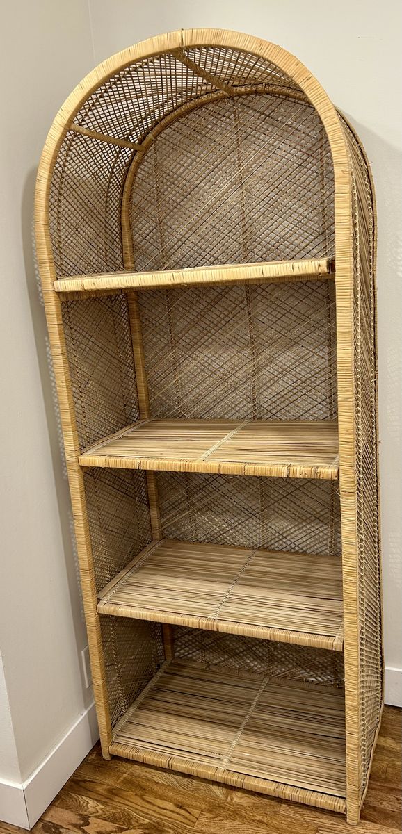VenmoBeautiful Wicker Arched Shelf Great condition. Selves are removable for transport or if you need taller space for decor. There are a couple areas where the wicker has spilt but the shelf is in overall great condition. Asking $200