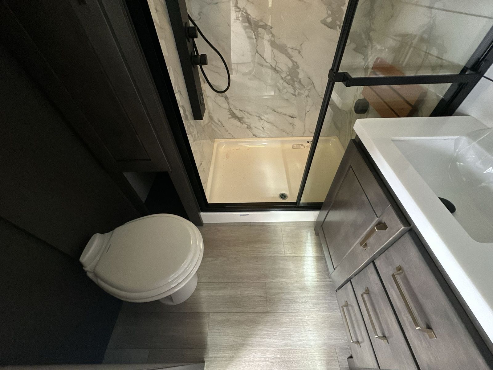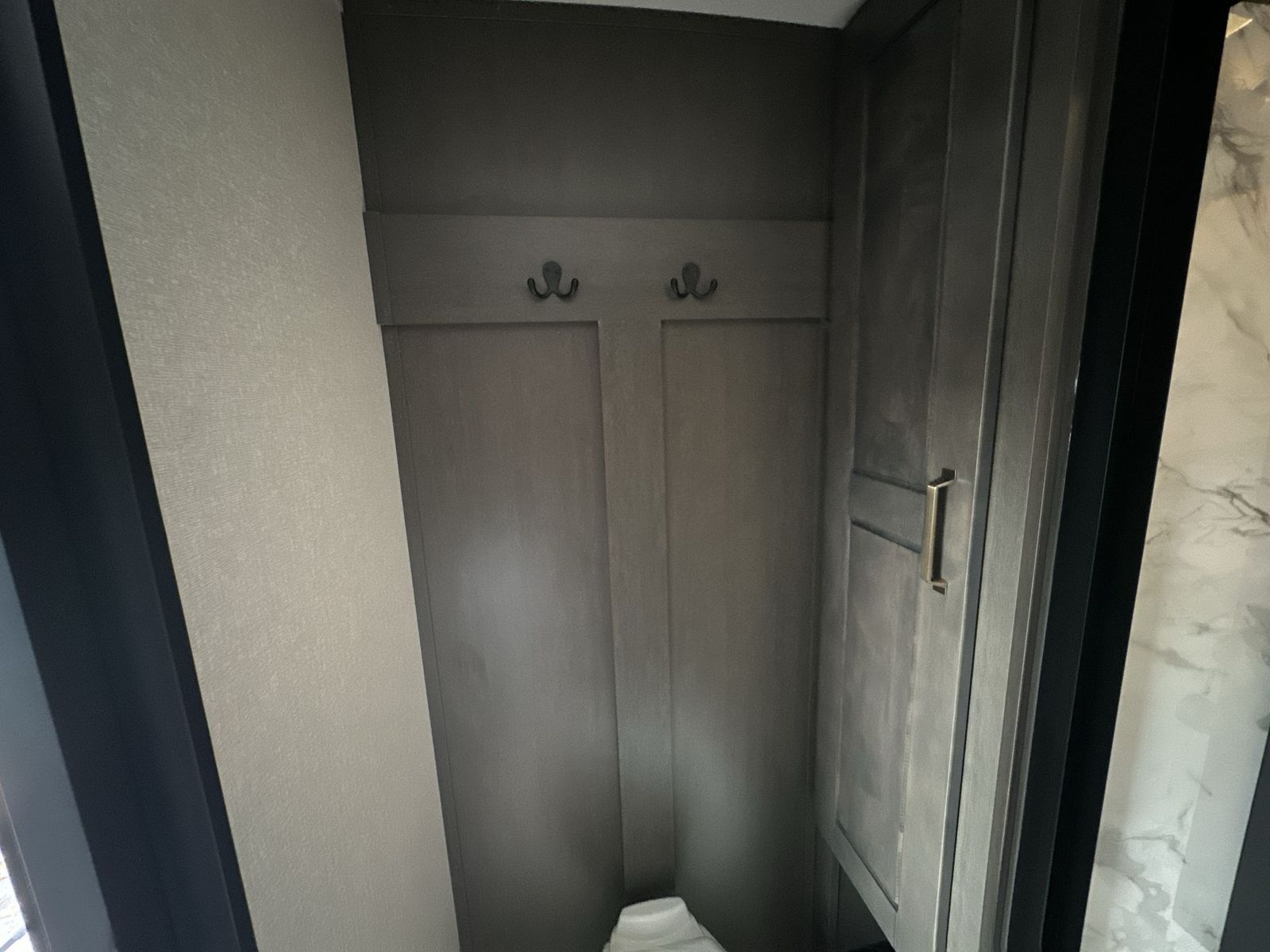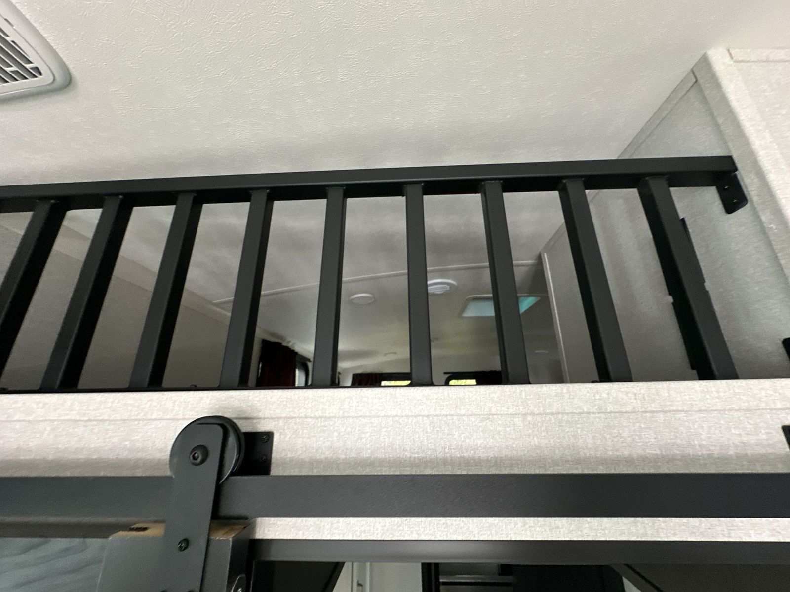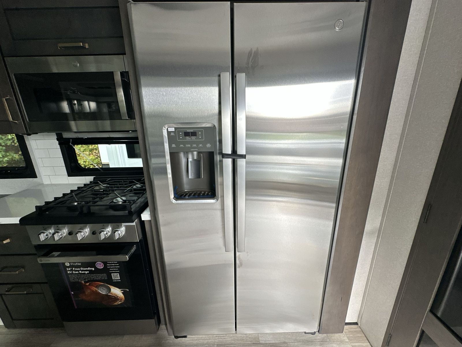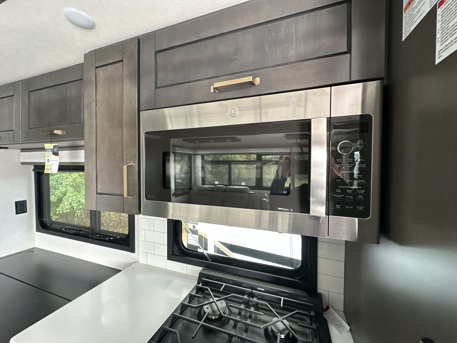 At the front of the 40DB fifth wheel, you’ll find the inviting front bedroom featuring a spacious 72" x 80" king bed, perfect for a restful night’s sleep. This room also includes a wardrobe and a flip-up dresser with a TV above, providing plenty of storage for clothing and essentials. Moving down the hall, one of two full bathrooms offers a 36" x 48" shower with a built-in seat for added accessibility, along with linen shelves for extra storage. At the center of the trailer, the main living area opens up with dual opposing slides for maximum comfort and room to move. One slide houses a 21-cu. ft. residential refrigerator and a 30" space-saving convection microwave with a built-in air fryer, while the central kitchen island includes a sink and pull-out cutting board, everything you need to prepare meals on the go. Across the way, the opposite slide features a roll-out table and theater seating, creating the perfect space to dine and relax after a long day. At the rear, the second bedroom includes a 60" x 80" queen bed in a slide-out with two wardrobes opposite for ample storage, plus a private full bathroom complete with a tub/shower combo and its own exterior exit for added convenience. Above it all, the loft provides three 30" x 80" bed mats and a loft cabinet, offering extra-sleeping space or additional storage for the whole family’s adventures.