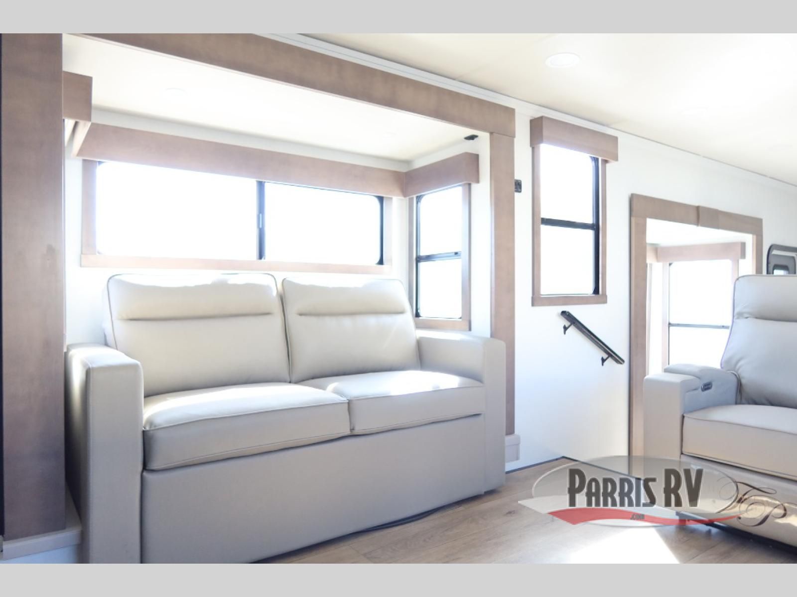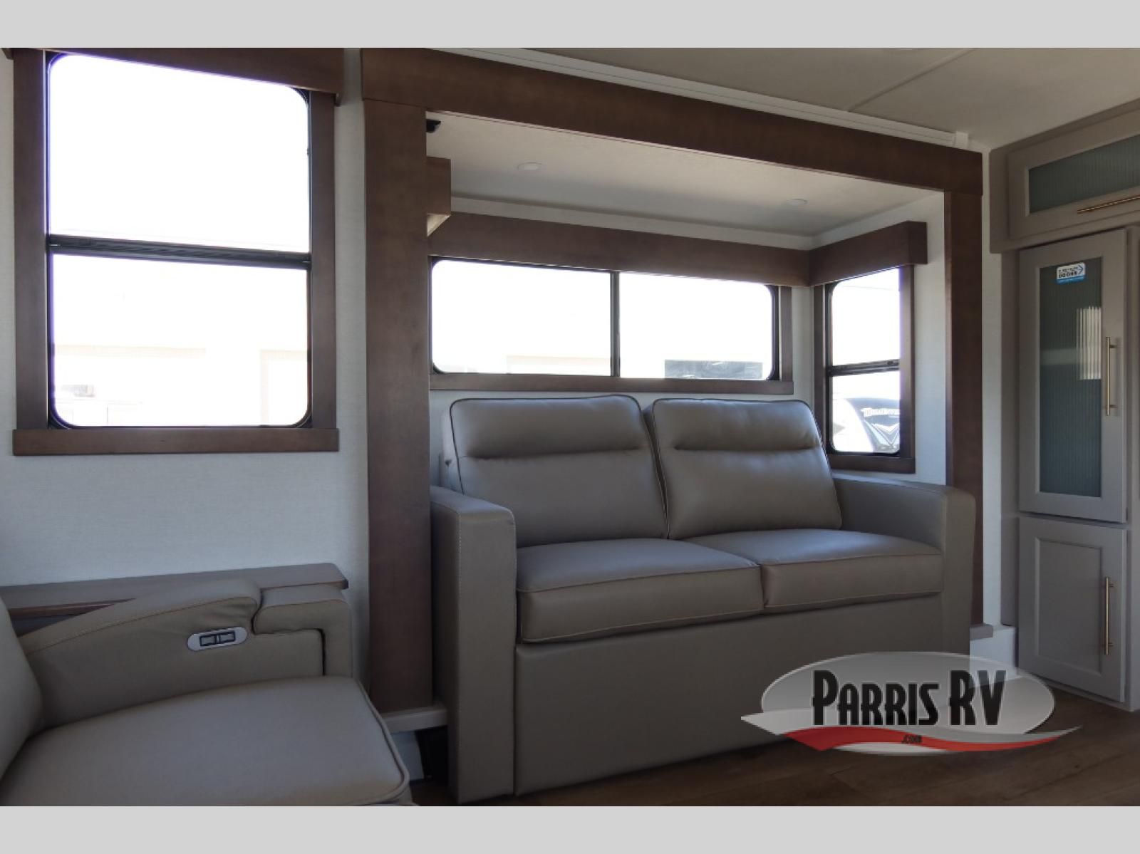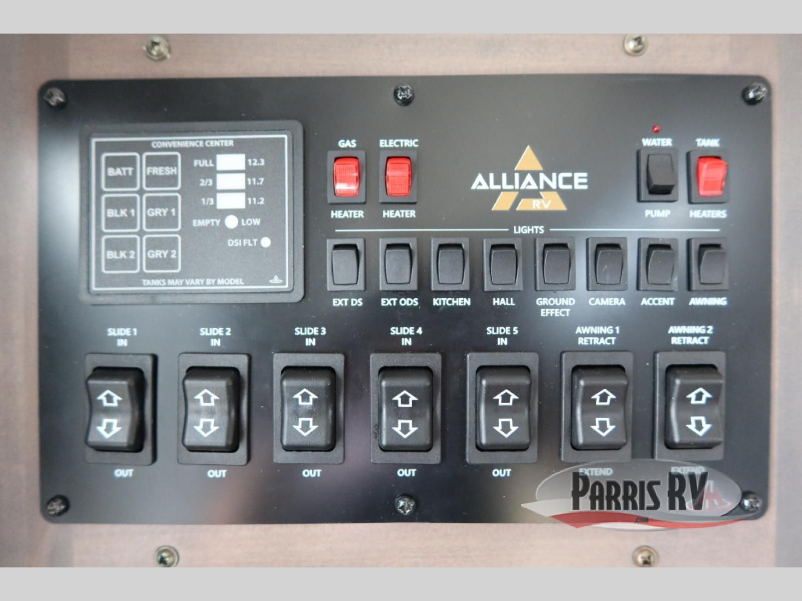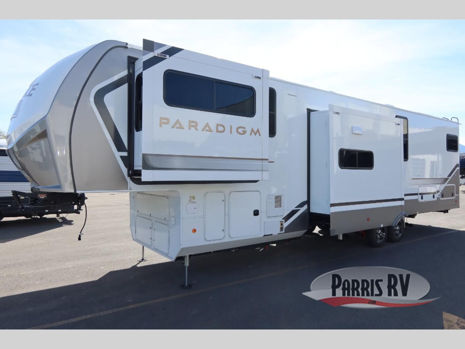 The Paradigm fifth wheels by Alliance RV are functional, high-quality, and luxurious for an unforgettable camping experience. There are three A/C units and a 40K BTU furnace to keep you comfortable year around, and you'll appreciate additional convenient amenities, like the all-in-one enclosed/heated utility center and the color coded and numbered wiring. A Helux Series coil spring pin box comes standard for hassle-free towing, along with Curt 8,000 lb. axles. You'll love the kitchen with its LG solid surface countertops and Lusso range, plus there is LED motion lighting in the pantry and a Maxx fan with a rain sensor to keep everything fresh when making dinner. Each model also includes an HD Smart TV in the living room and bedroom. And of course there are a variety of options you can choose from to further customize your fifth wheel; dual pane windows, Super Solar Plus, slide out awning toppers, and generator prep or a generator to name a few!