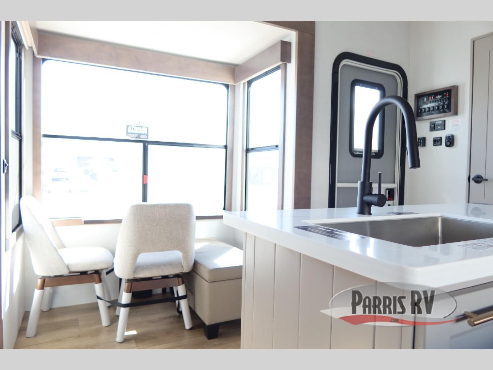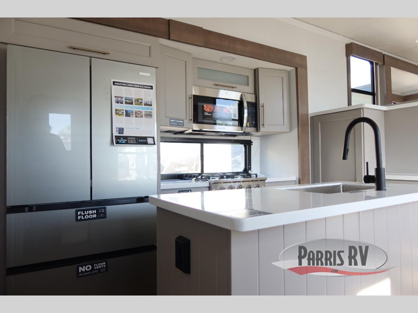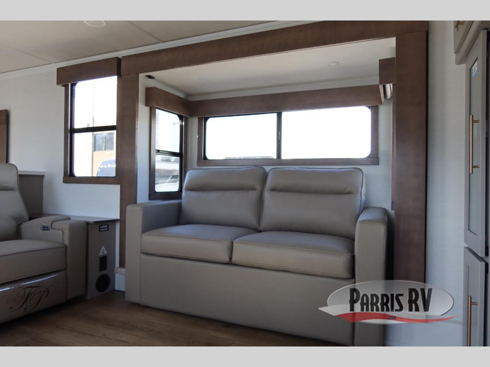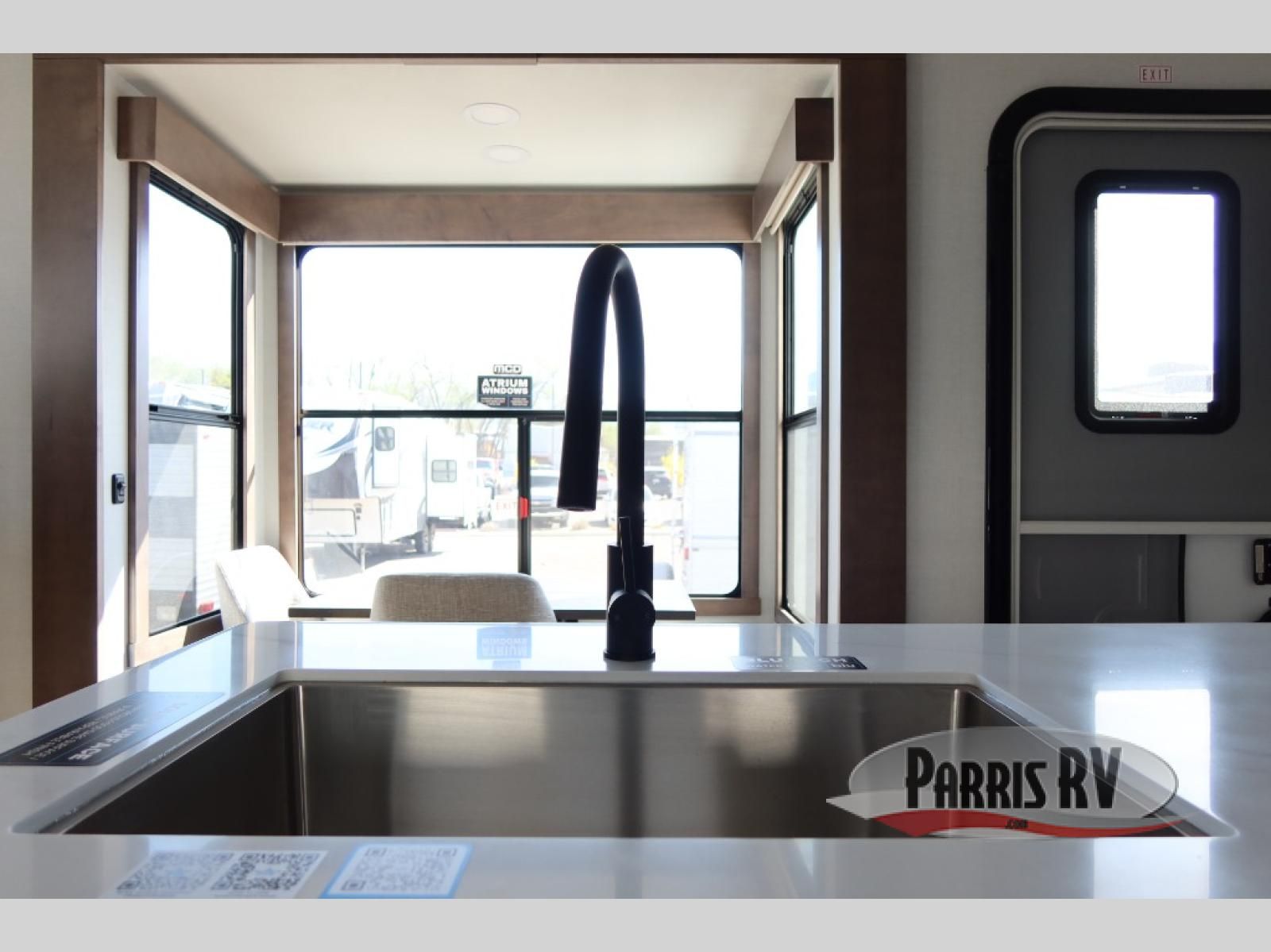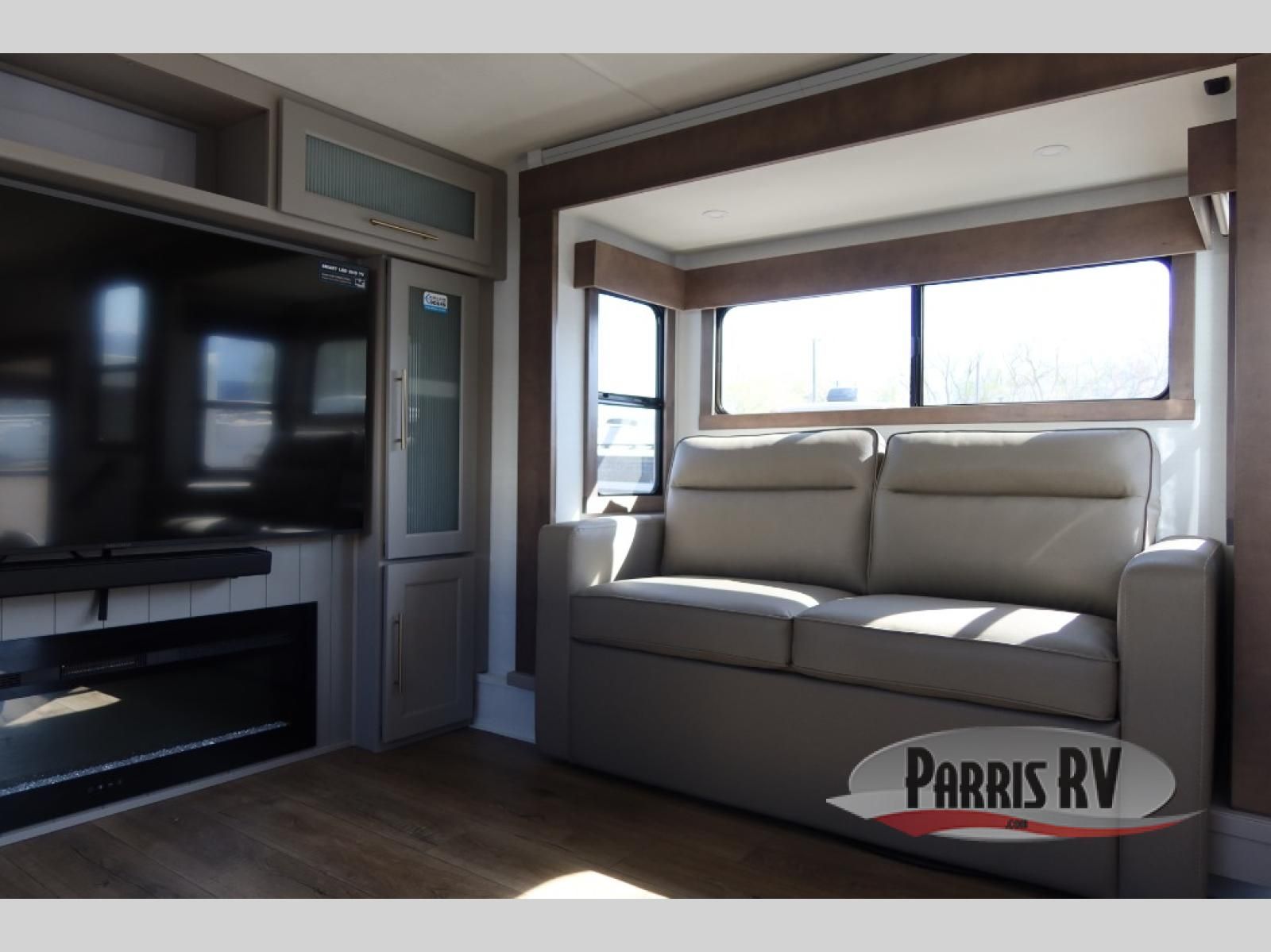 The Paradigm fifth wheels by Alliance RV are functional, high-quality, and luxurious for an unforgettable camping experience. There are three A/C units and a 40K BTU furnace to keep you comfortable year around, and you'll appreciate additional convenient amenities, like the all-in-one enclosed/heated utility center and the color coded and numbered wiring. A Helux Series coil spring pin box comes standard for hassle-free towing, along with Curt 8,000 lb. axles. You'll love the kitchen with its LG solid surface countertops and Lusso range, plus there is LED motion lighting in the pantry and a Maxx fan with a rain sensor to keep everything fresh when making dinner. Each model also includes an HD Smart TV in the living room and bedroom. And of course there are a variety of options you can choose from to further customize your fifth wheel; dual pane windows, Super Solar Plus, slide out awning toppers, and generator prep or a generator to name a few!