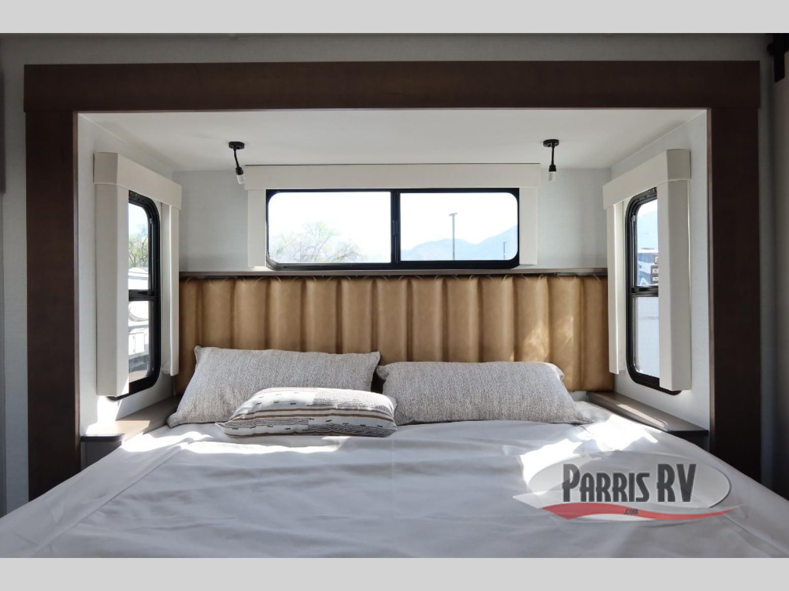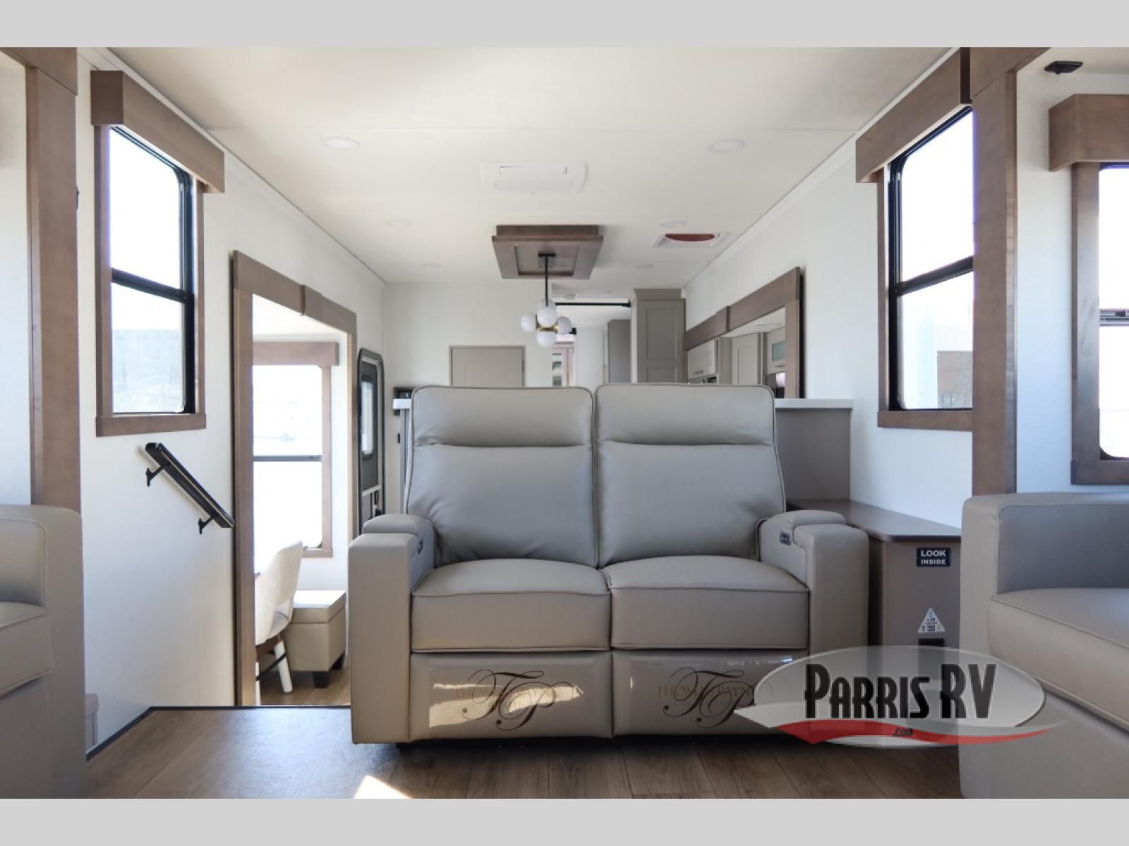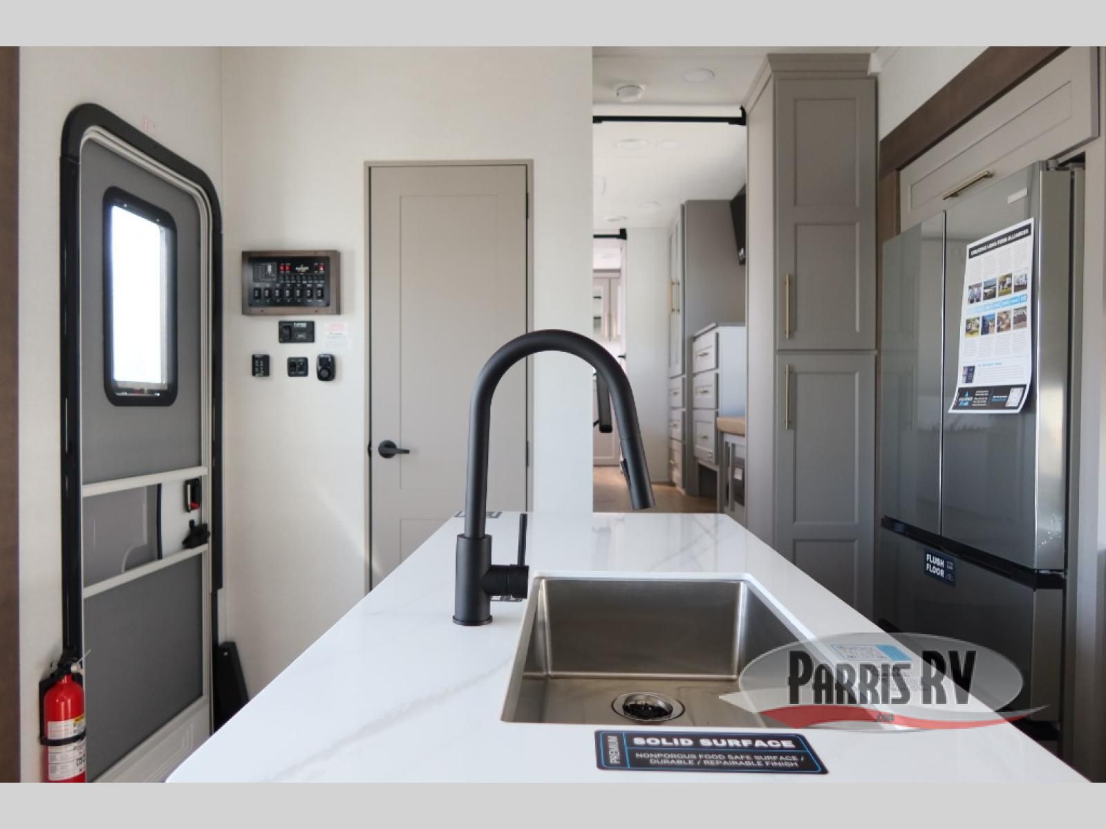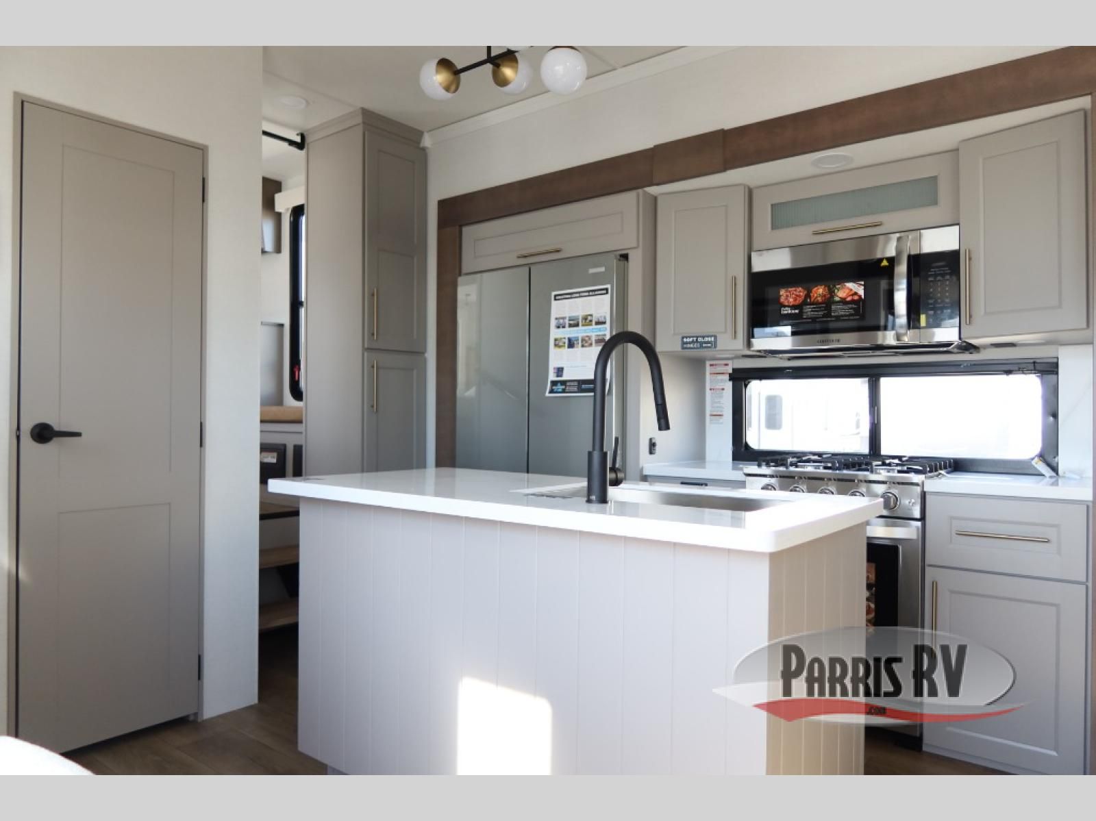 The Paradigm fifth wheels by Alliance RV are functional, high-quality, and luxurious for an unforgettable camping experience. There are three A/C units and a 40K BTU furnace to keep you comfortable year around, and you'll appreciate additional convenient amenities, like the all-in-one enclosed/heated utility center and the color coded and numbered wiring. A Helux Series coil spring pin box comes standard for hassle-free towing, along with Curt 8,000 lb. axles. You'll love the kitchen with its LG solid surface countertops and Lusso range, plus there is LED motion lighting in the pantry and a Maxx fan with a rain sensor to keep everything fresh when making dinner. Each model also includes an HD Smart TV in the living room and bedroom. And of course there are a variety of options you can choose from to further customize your fifth wheel; dual pane windows, Super Solar Plus, slide out awning toppers, and generator prep or a generator to name a few!