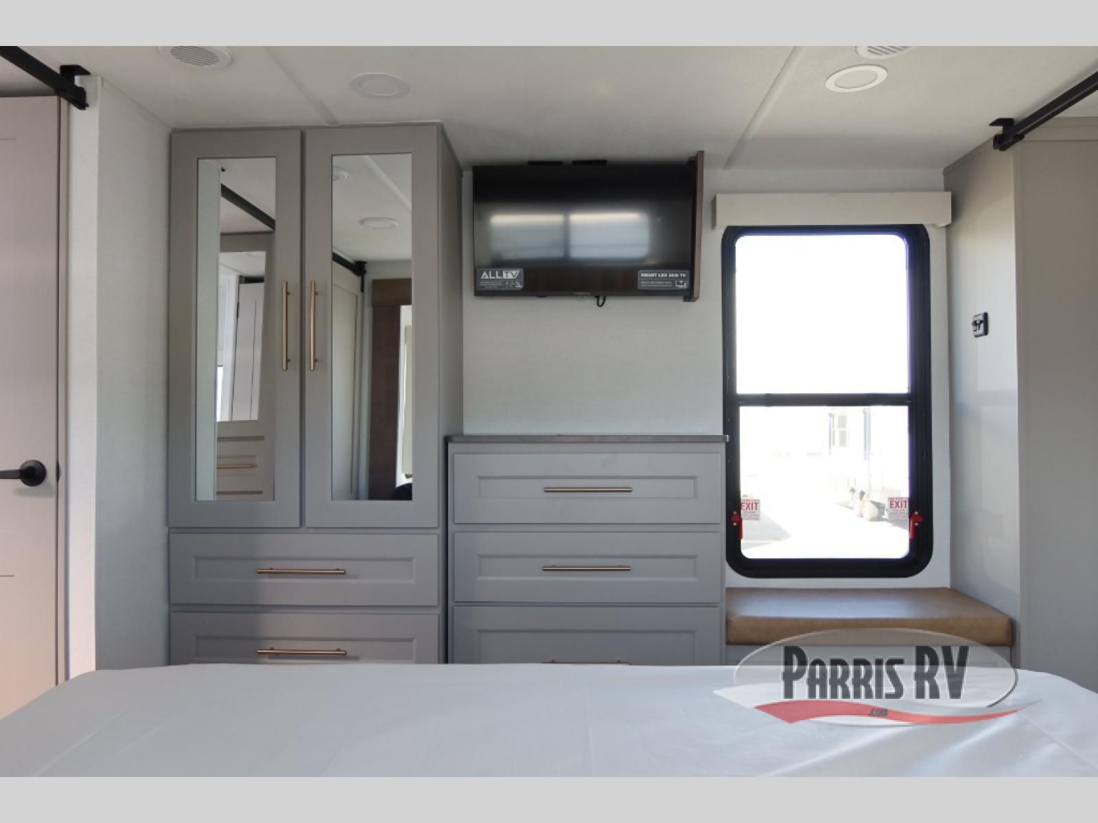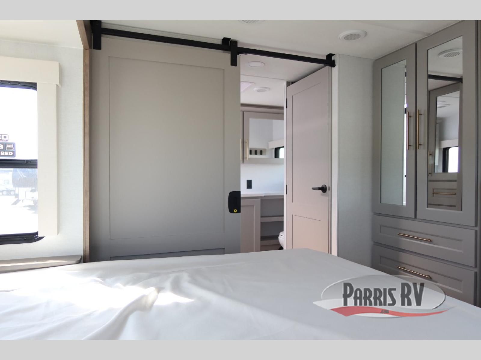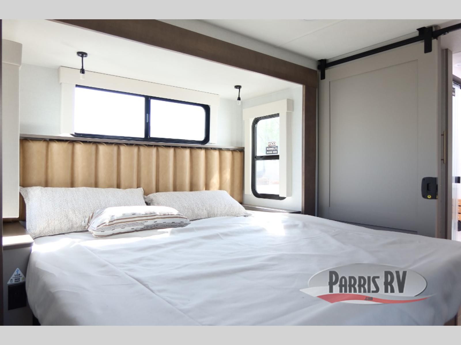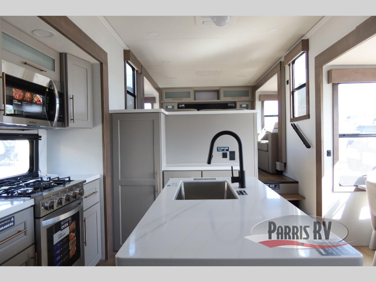 The Paradigm fifth wheels by Alliance RV are functional, high-quality, and luxurious for an unforgettable camping experience. There are three A/C units and a 40K BTU furnace to keep you comfortable year around, and you'll appreciate additional convenient amenities, like the all-in-one enclosed/heated utility center and the color coded and numbered wiring. A Helux Series coil spring pin box comes standard for hassle-free towing, along with Curt 8,000 lb. axles. You'll love the kitchen with its LG solid surface countertops and Lusso range, plus there is LED motion lighting in the pantry and a Maxx fan with a rain sensor to keep everything fresh when making dinner. Each model also includes an HD Smart TV in the living room and bedroom. And of course there are a variety of options you can choose from to further customize your fifth wheel; dual pane windows, Super Solar Plus, slide out awning toppers, and generator prep or a generator to name a few!