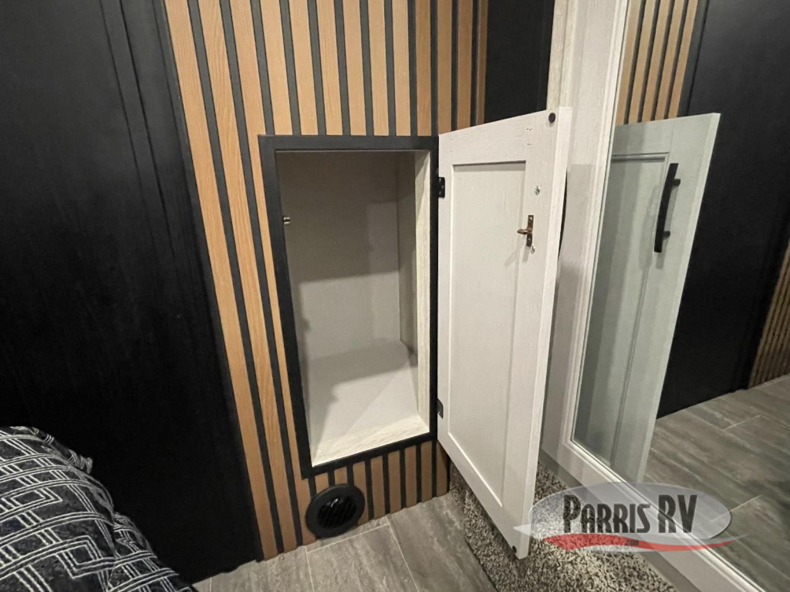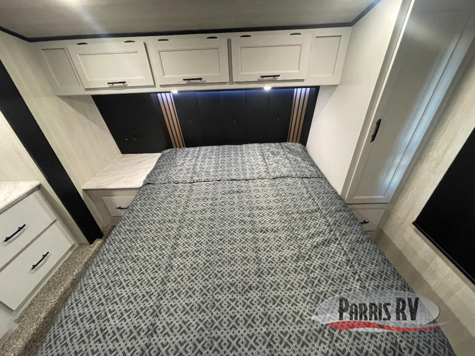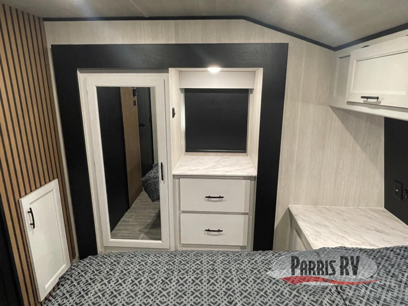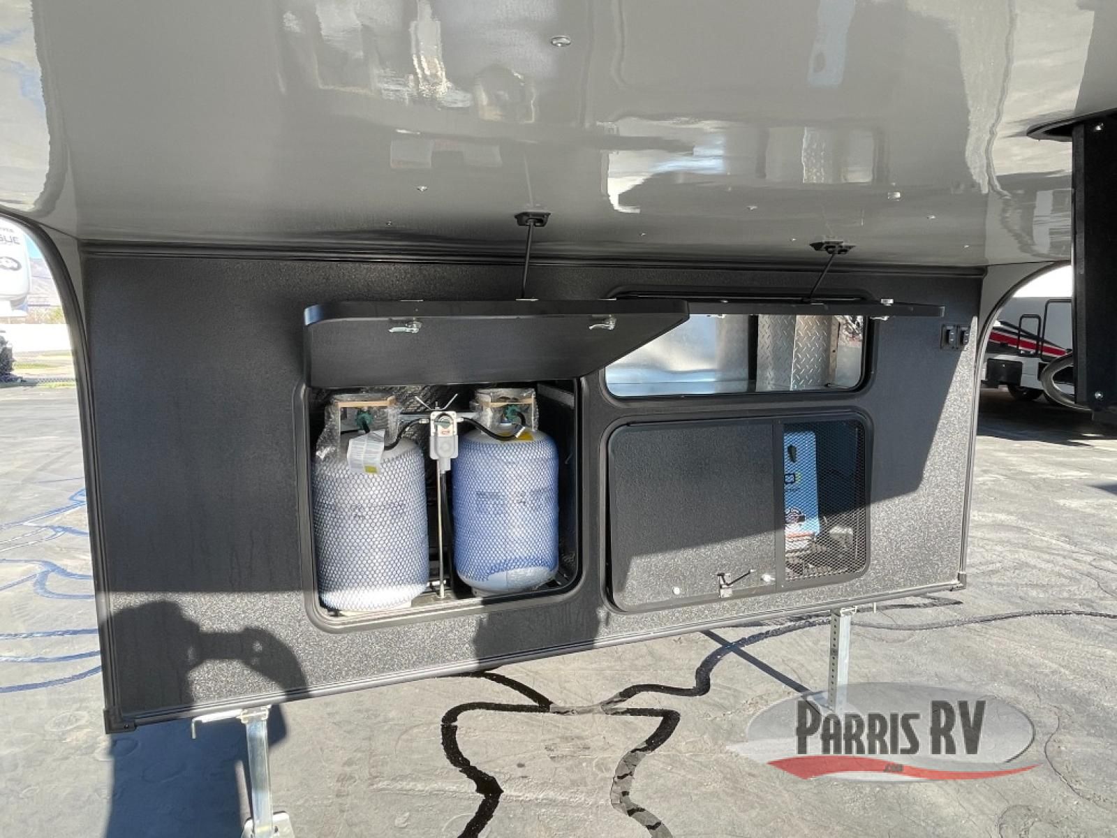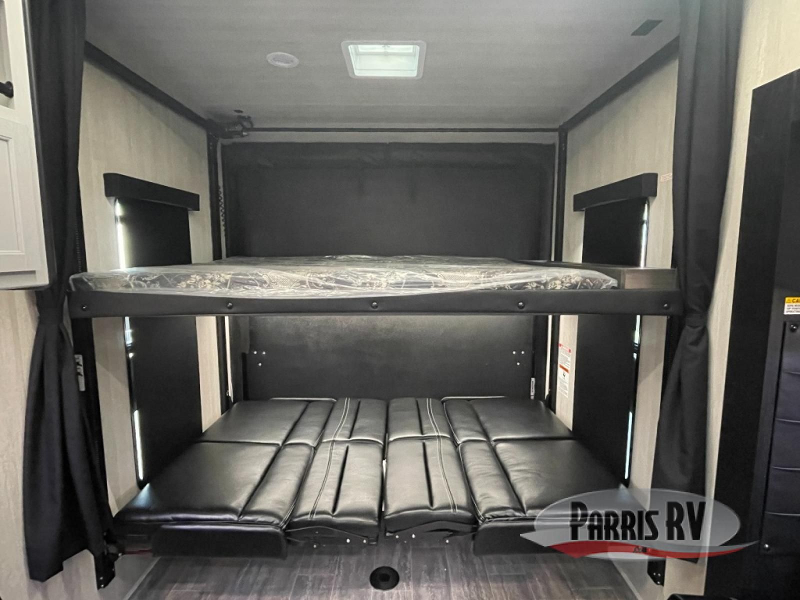 This toy hauler is ready for fun when you are! After your toys are unloaded from the garage, relax on the power sofa bed or let your guests take a rest on the power queen bed above the sofa. There are also dual swivel/rocker chairs with a table you can enjoy your morning coffee at each morning. The chef of your group can make eggs and bacon on the three burner cooktop before you all head out, and the full bath will allow you to clean up when you return. The front private bedroom will feel just like home with its RV queen bed, nightstand, wardrobe, and overhead cabinets. This model also has two optional slide outs if you'd like to add more interior space!
