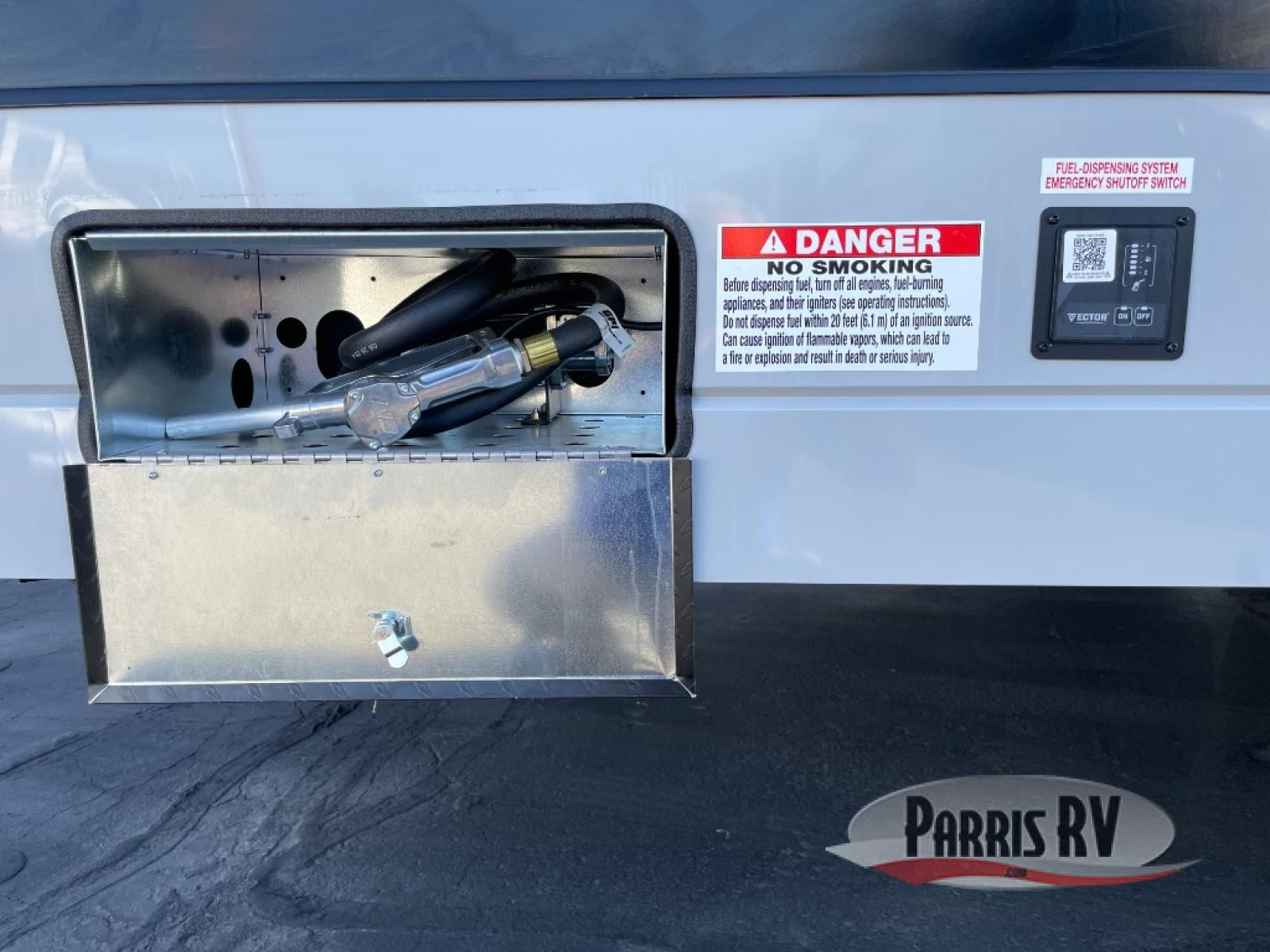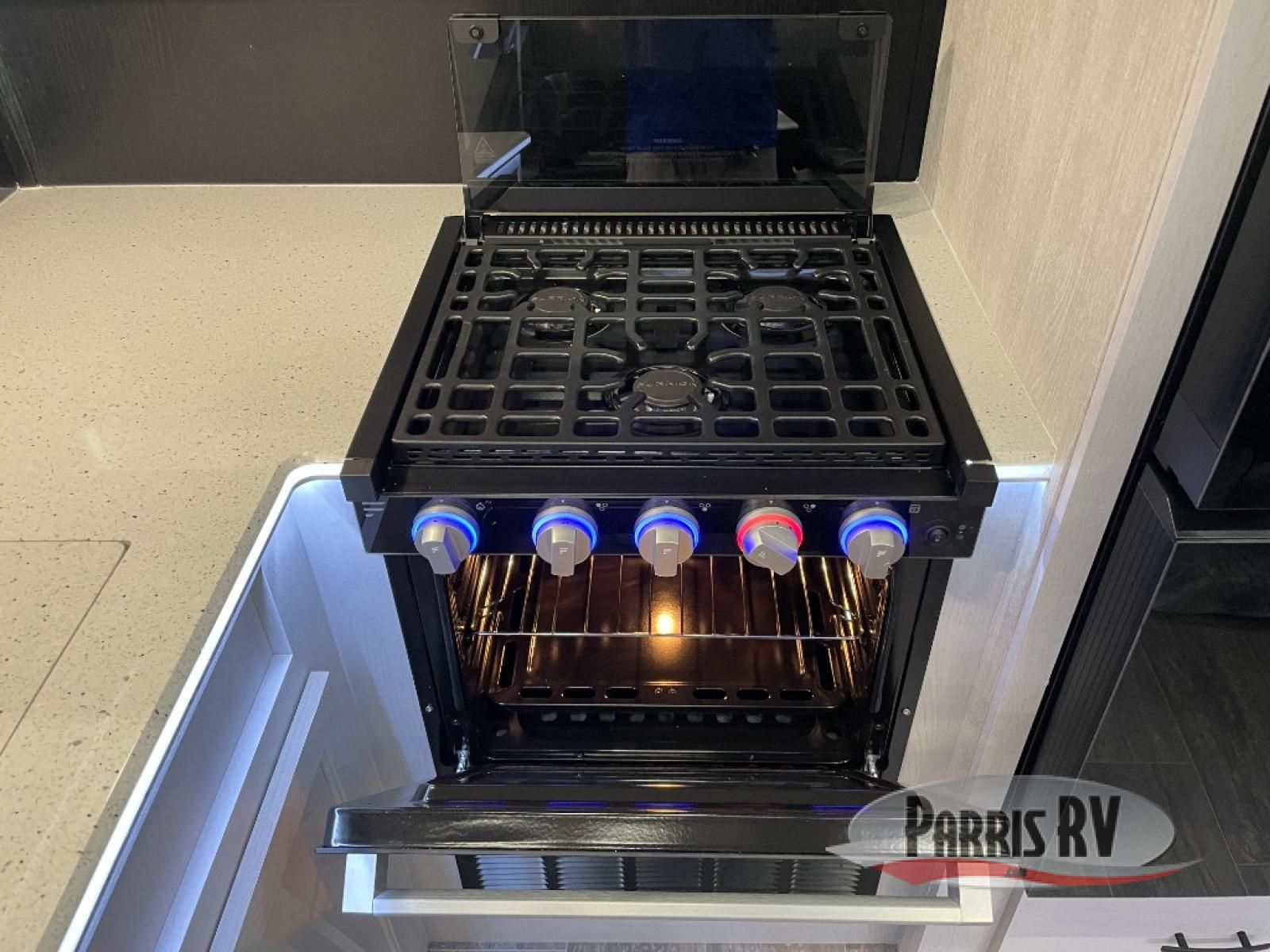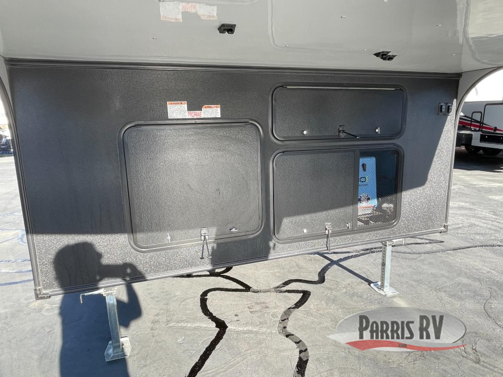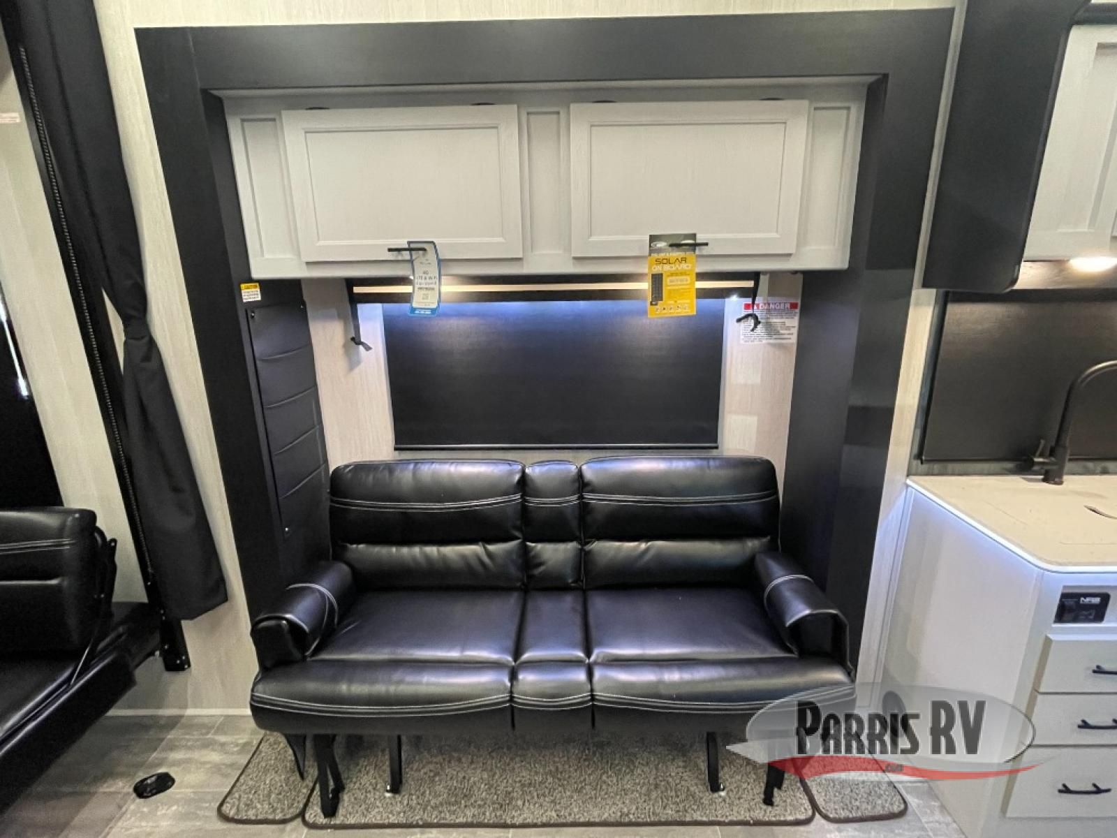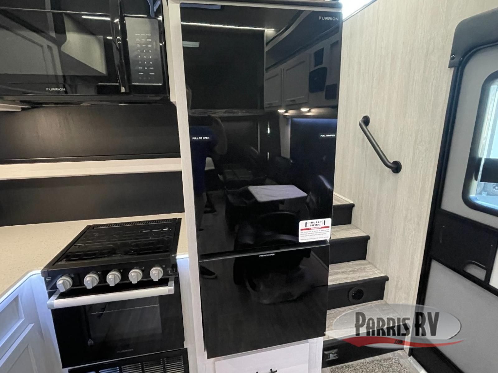 This toy hauler is ready for fun when you are! After your toys are unloaded from the garage, relax on the power sofa bed or let your guests take a rest on the power queen bed above the sofa. There are also dual swivel/rocker chairs with a table you can enjoy your morning coffee at each morning. The chef of your group can make eggs and bacon on the three burner cooktop before you all head out, and the full bath will allow you to clean up when you return. The front private bedroom will feel just like home with its RV queen bed, nightstand, wardrobe, and overhead cabinets. This model also has two optional slide outs if you'd like to add more interior space!