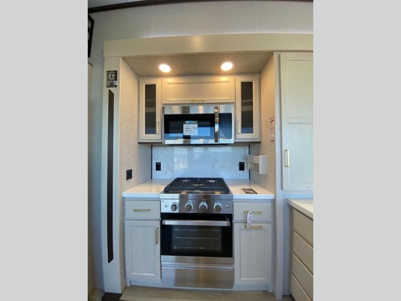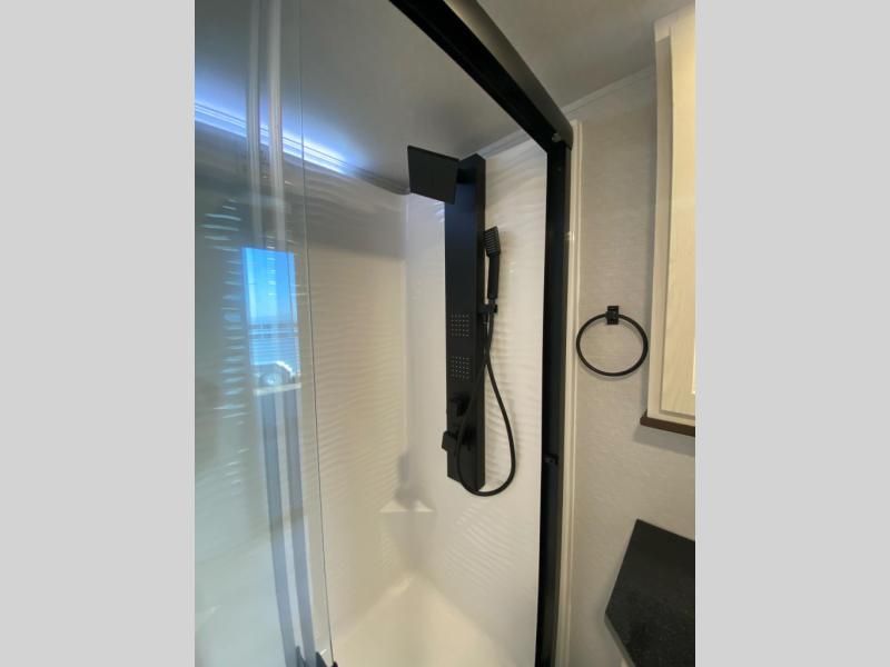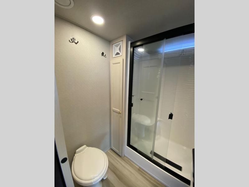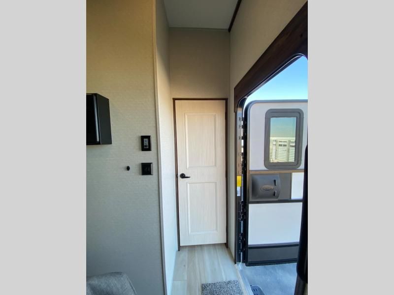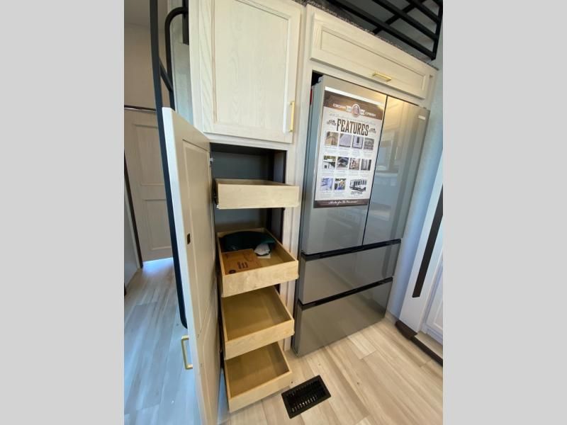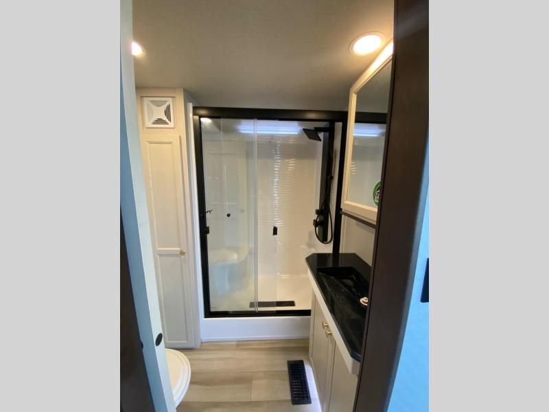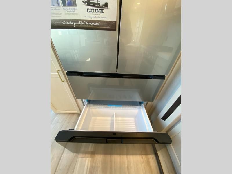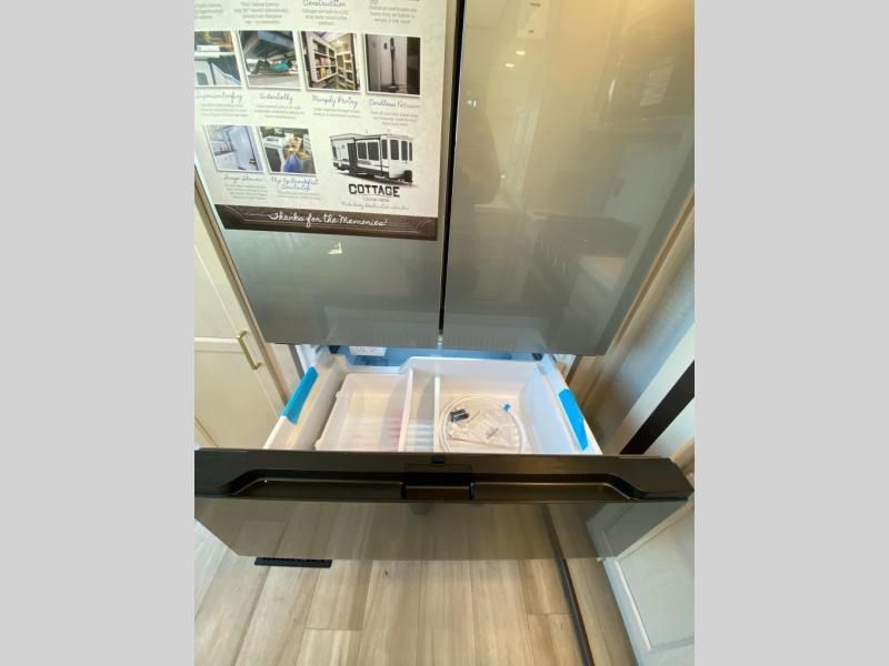 With any Cedar Creek Cottage destination trailer by Forest River, you can enjoy extended stays with residential features at the location of your choice! Each model is built with 3M bonded sidewalls that grow stronger with age and are resistant to UV, heat, oil, moisture, and more. There is also an AlphaPly TPO roof membrane, detachable entry steps, and new waterproof and bug proof Vixenite slide room floor panels for added durability. Head inside where you'll find residential dovetail, self-closing drawers, flush floor slides in the kitchen and living area, a residential style headboard and luxurious bedding decor, and extra storage for linens in the bedroom and bath. Each model is also pre-wired for satellite to the roof, and you can stay connected with the new Cradle Point WiFi/5G antenna and Day 1 connectivity.