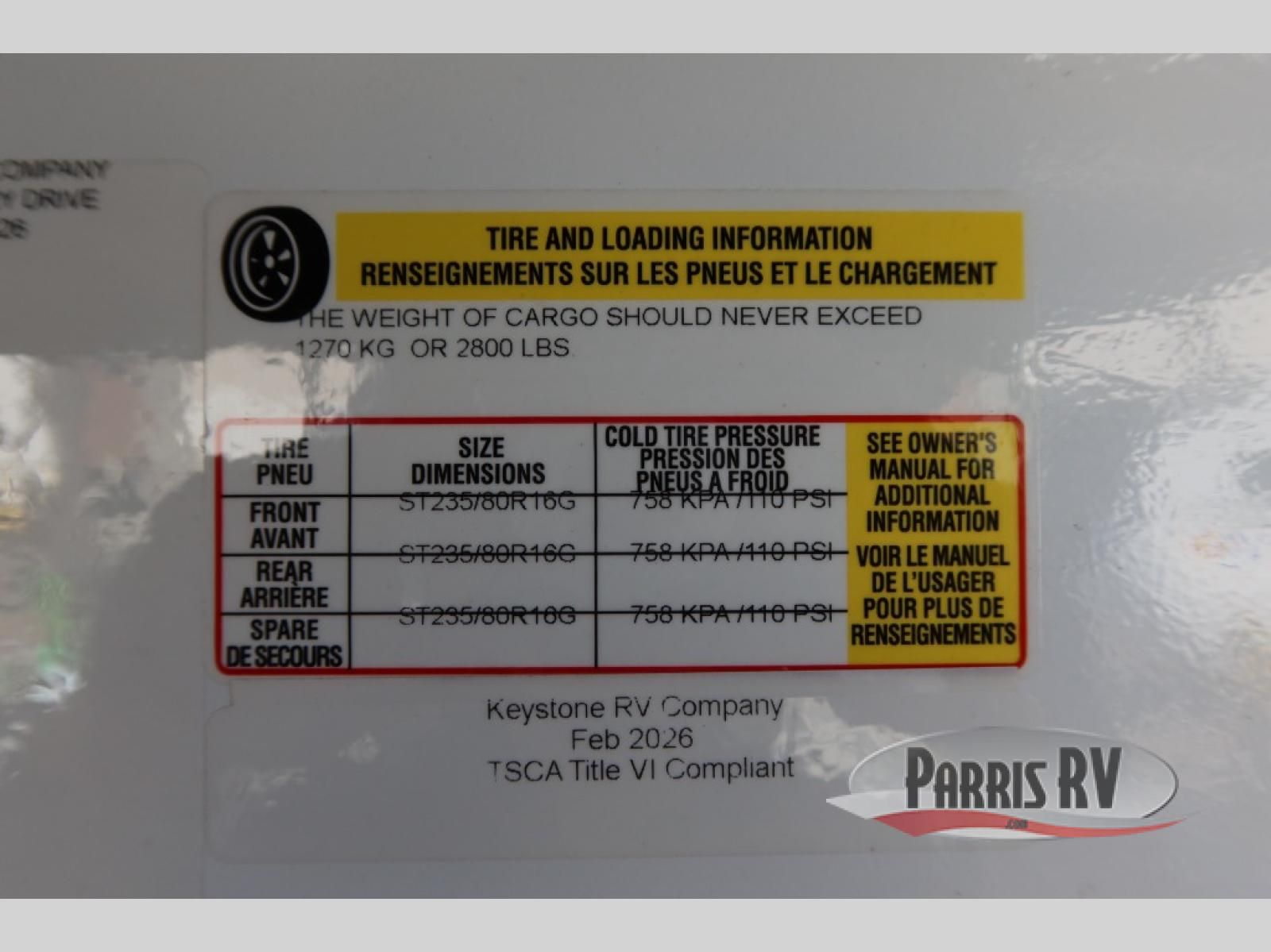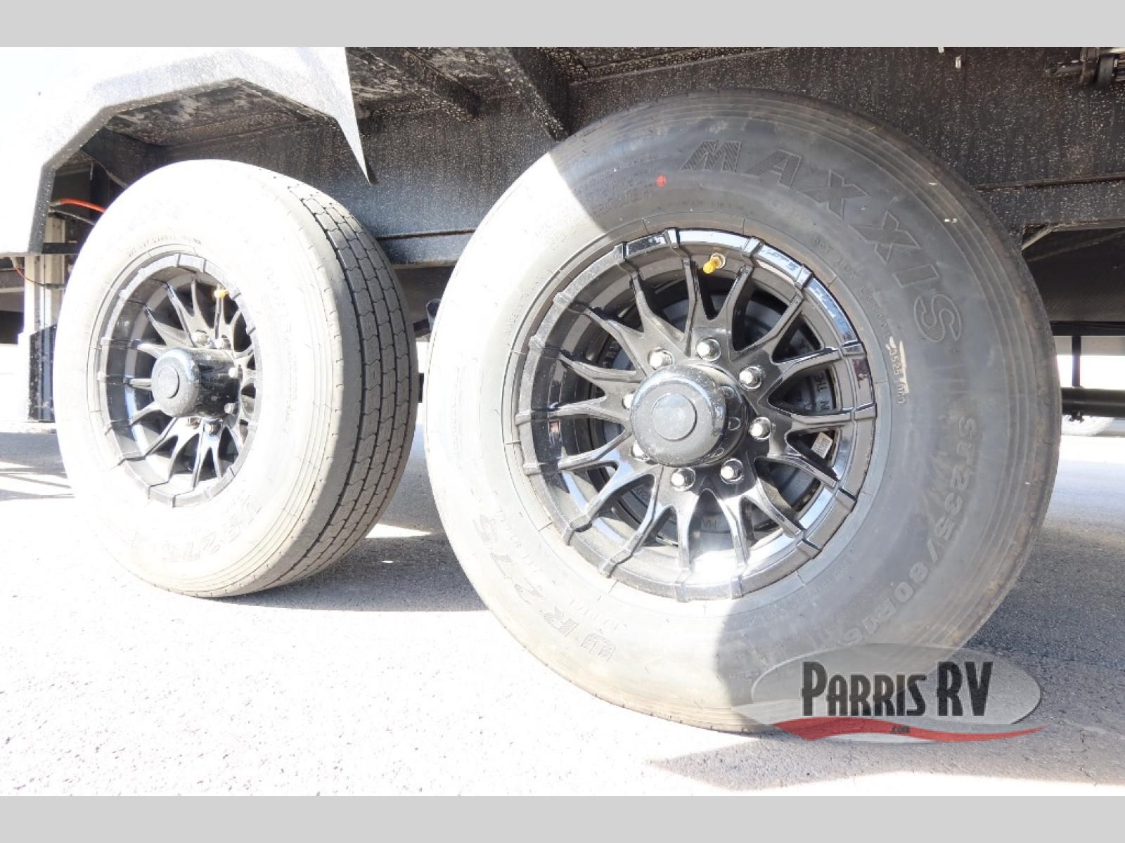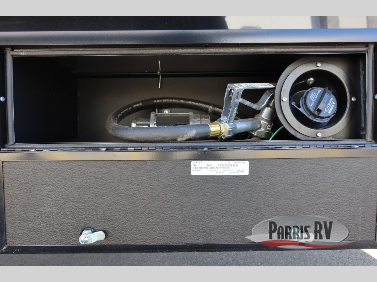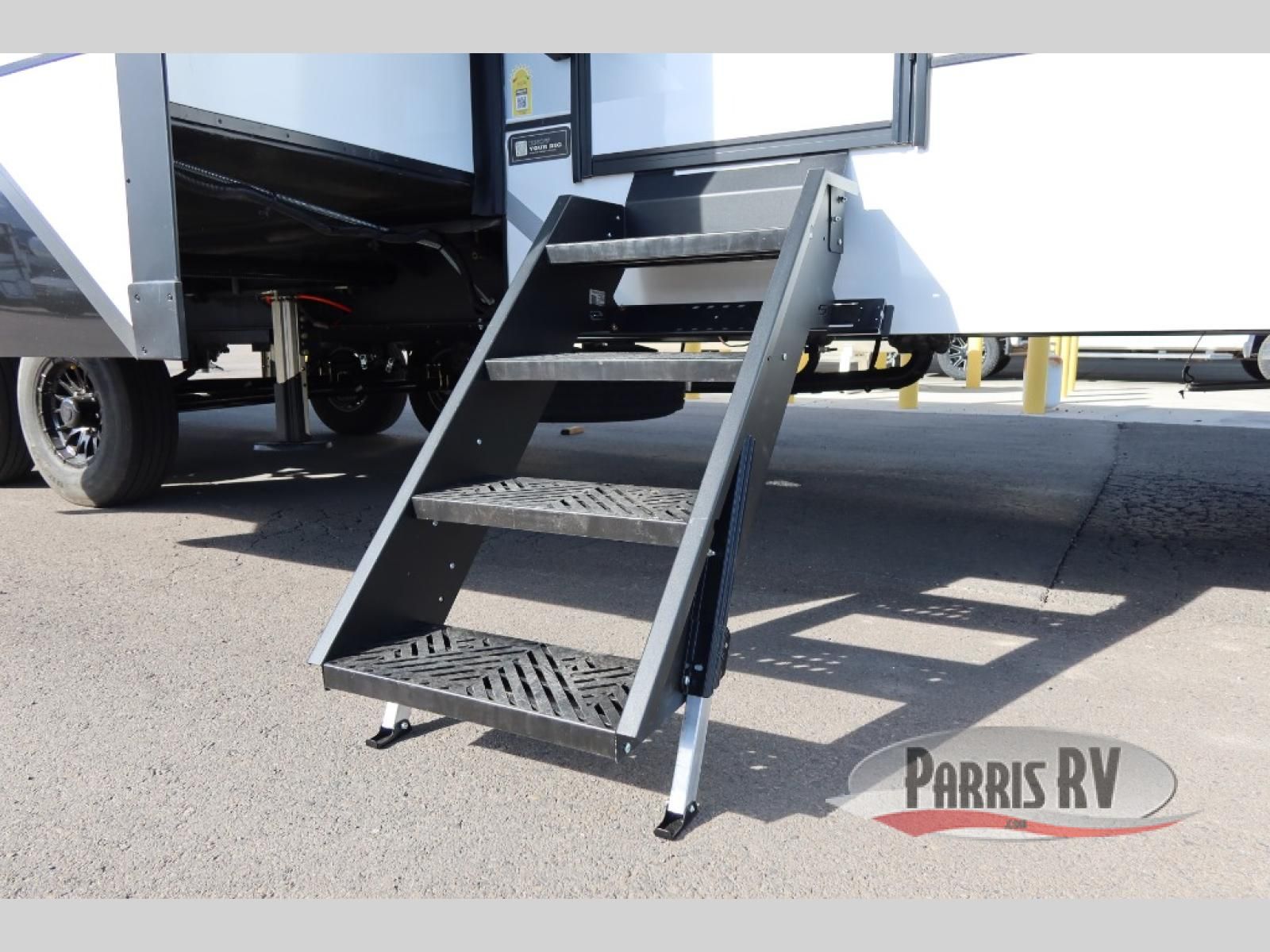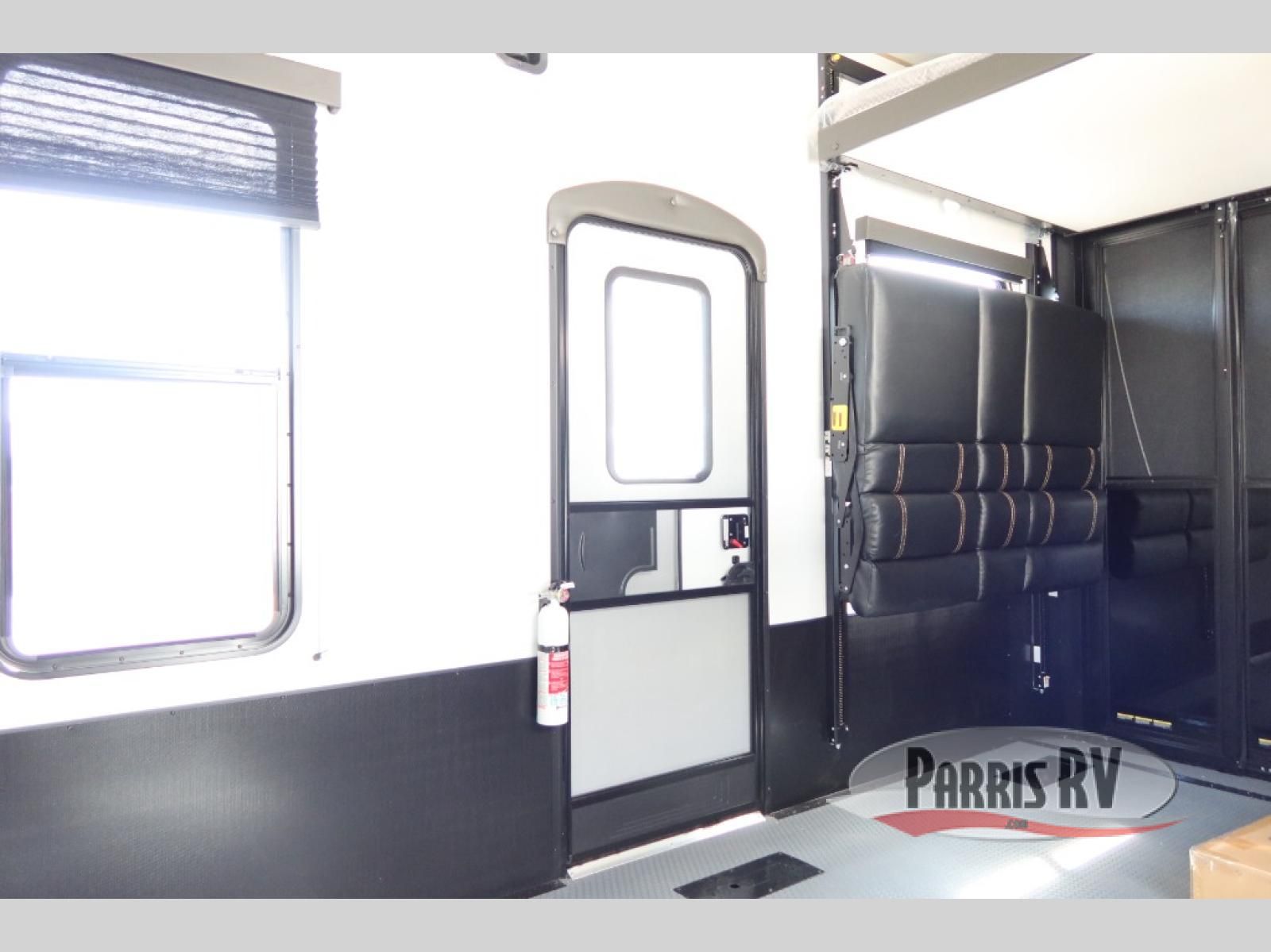 With any Keystone Raptor Carbon Series toy hauler fifth wheel, you will enjoy a new chassis with a larger pass-through storage and a new front cap with LED lighting. There is also an upgraded MORryde CRE3000 suspension, a 6-point hydraulic Level-Up system, and a Nautilus exterior convenience center to easily access all your hookups. Inside, you'll love the hardwood soft-close cabinet doors, pressed countertops, and Thomas Payne furniture. The Extreme Weather Package will add protection against the elements, and the on-demand tankless water heater will provide endless hot showers!