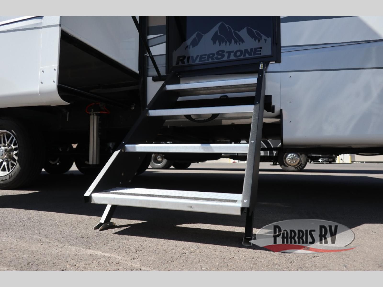 The Forest River RiverStone fifth wheels and toy haulers are luxurious units that have it all! You'll find an automatic six-point hydraulic level-up system to keep your unit in place, and there is preparation for a four-camera observation system. The TravlFi Journey XTR 4G/LTE router and WiFi extender will help you stay connected to the outside world, and you'll never have to overpack again since the Splendid "Astral" stackable washer and dryer will let you clean the small amount of clothes you've brought with you. Another high luxury is the Fischer Paykal dishwasher which will allow you to spend more time enjoying your camp life and less time cleaning up. Each unit is built with a LCI Road Armour suspension system, dual-pane frameless windows, a full docking station, a 200W solar panel, and a BMPro touch control system.