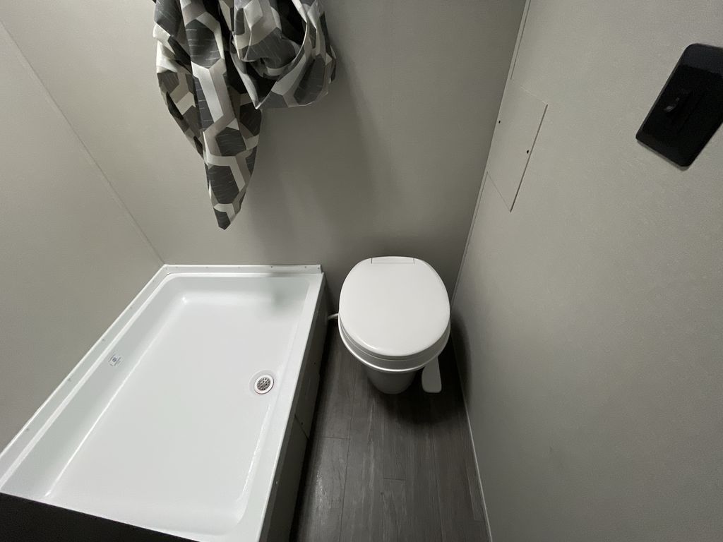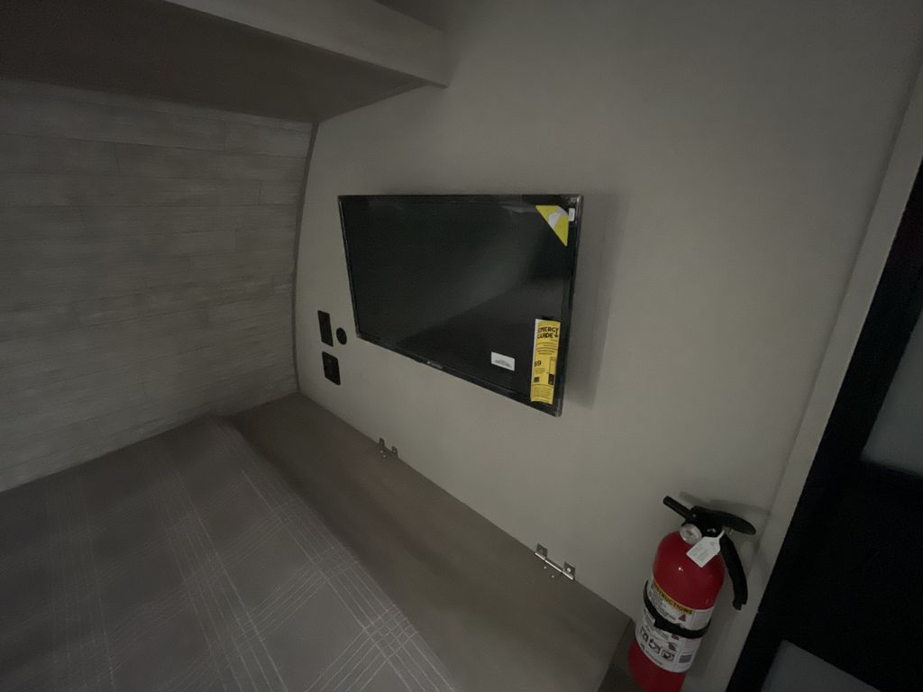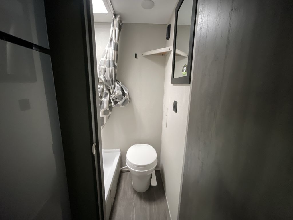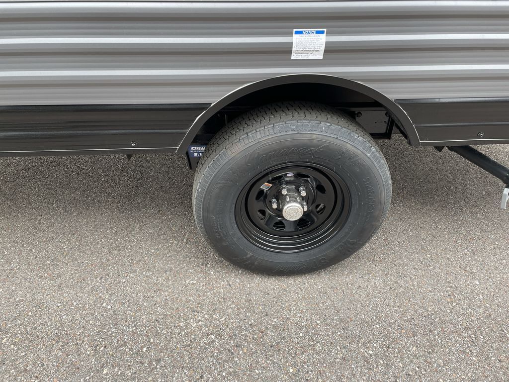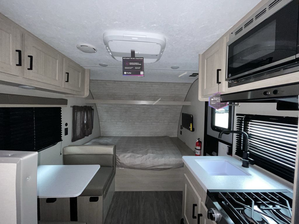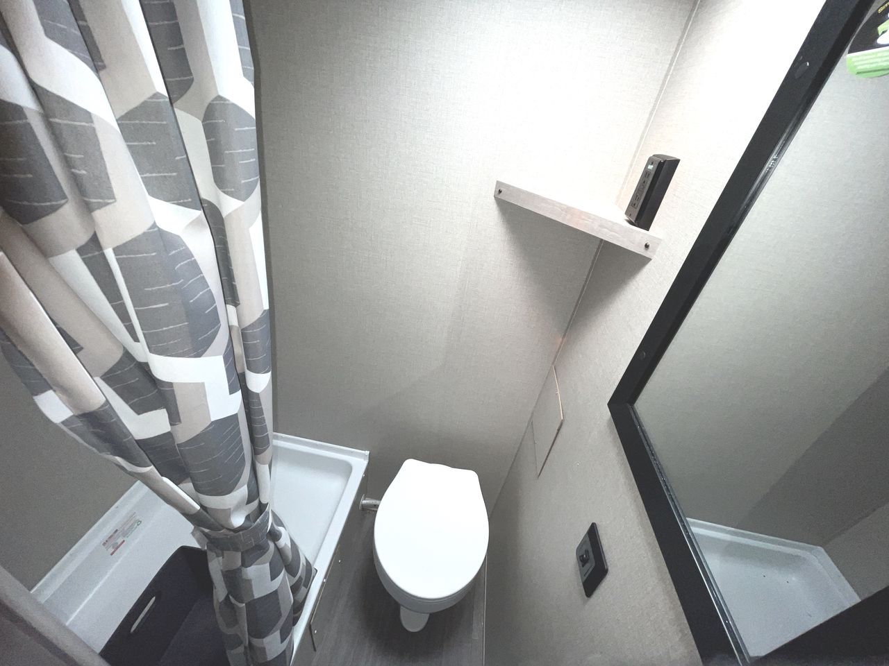 This cozy travel trailer can sleep five, so pack up and head out! You will have a queen bed up front to sleep on each night instead of an air mattress, and the little ones can take the 28" x 70" bunk beds! There is also a booth dinette here that can sleep an additional guest and is perfect for sharing meals during the day. The two burner cooktop and microwave oven means you won't have to cook over a campfire, and the private toilet and shower lets you clean up after a day outdoors. This model includes plenty of storage space, including bedroom storage, an exterior pass-through, plus additional outside storage beneath the bunks for hiking gear!
