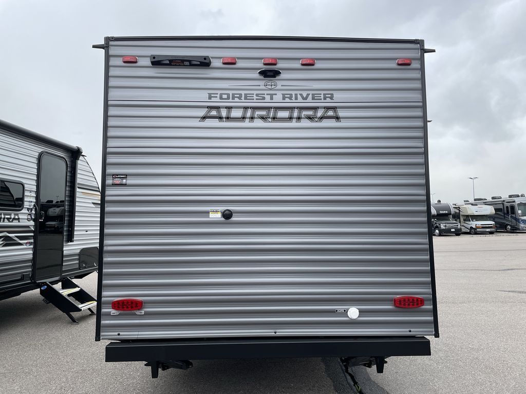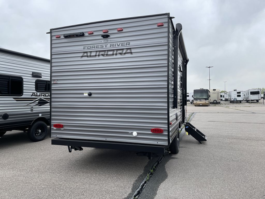 Comfortability, usability, and quality is what you will find in each one of these Forest River Aurora Light travel trailers! They are designed with a superior build and packed full with industry leading, functional, and distinctive standard features. The diamond plate rock guard will protect your unit from road debris and the nitrogen filled radial tires, which keep their pressure longer, offer better fuel economy. You will also find upgraded JBL Elite exterior speaker outside, an electric awning with multicolor lights and remote, plus flush mount baggage doors for easy packing. The interiors are beautifully designed with matte black kitchen and bath faucets, black nightshades in the living room, and GE kitchen appliances!