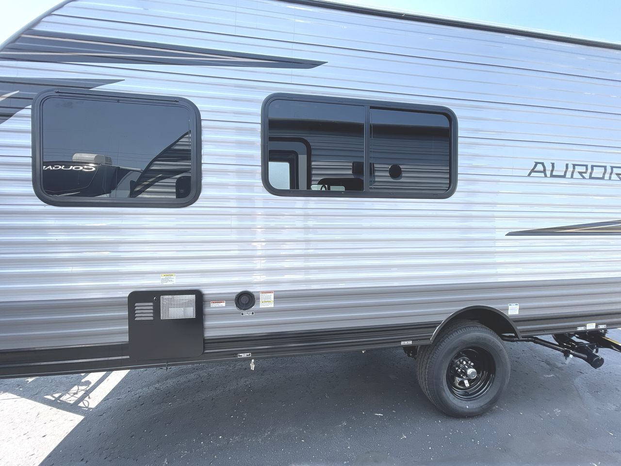 Comfortability, usability, and quality is what you will find in each one of these Forest River Aurora Light travel trailers! They are designed with a superior build and packed full with industry leading, functional, and distinctive standard features. The diamond plate rock guard will protect your unit from road debris and the nitrogen filled radial tires, which keep their pressure longer, offer better fuel economy. You will also find upgraded JBL Elite exterior speaker outside, an electric awning with multicolor lights and remote, plus flush mount baggage doors for easy packing. The interiors are beautifully designed with matte black kitchen and bath faucets, black nightshades in the living room, and GE kitchen appliances!