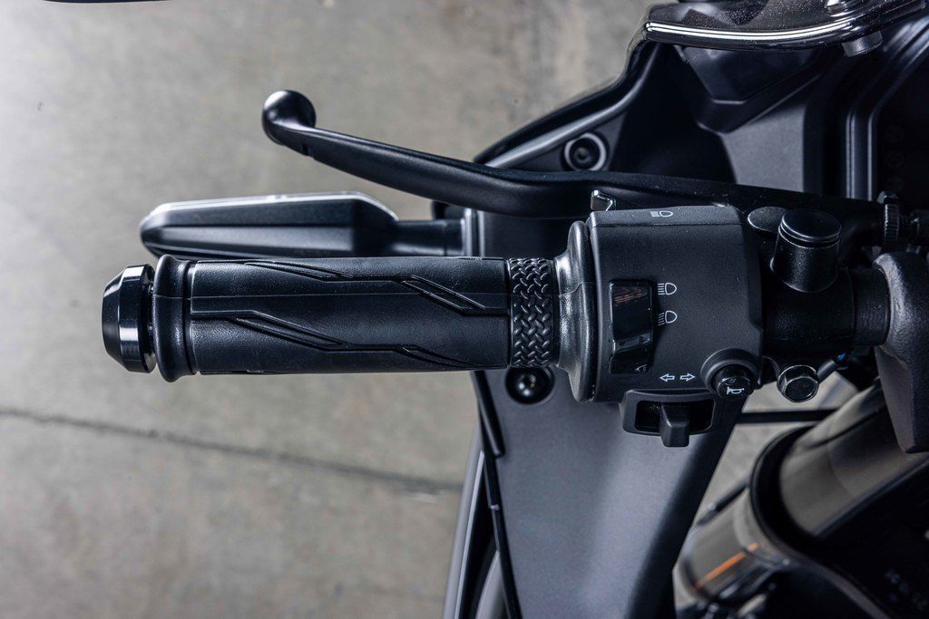 An LCD instrument cluster displays connected smartphone information along with vital vehicle data. There is also a USB-A socket located next to the display providing convenient power for phone charging or heated gear.