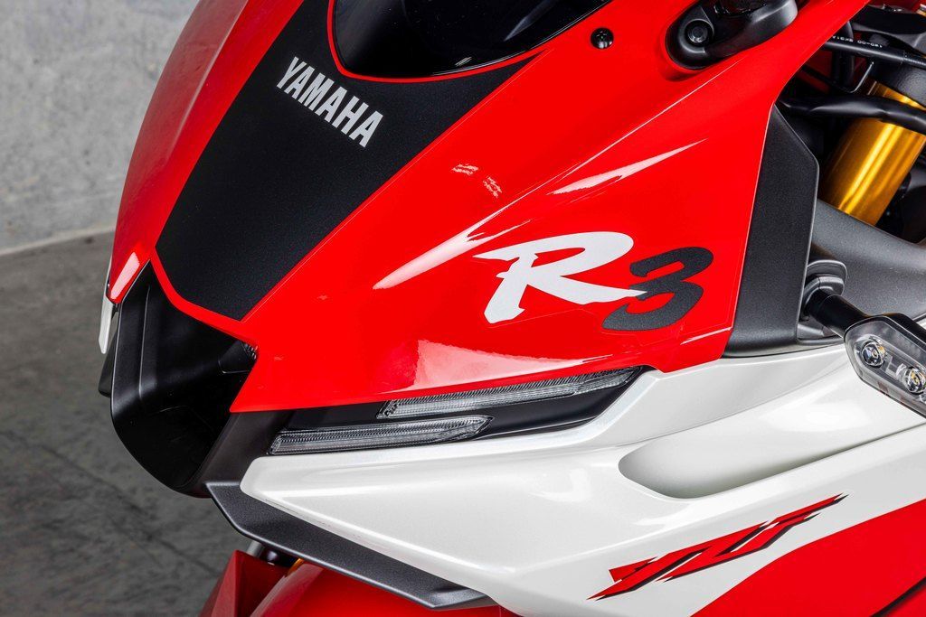 Celebrate seven decades of motorsports excellence with the 2026 YZF-R3 70th Anniversary Edition. Throwback white and red speed block livery, gold Yamaha Tuning Fork emblems, and Anniversary Edition badge combine with the R3's sleek, modern R-Series design to commemorate the 1955 birth of Yamaha Motor Company in standout style.