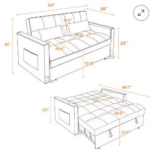VenmoNew - Resenkos 54" Adjustable Backrest Sofa w/ Double Armrest & Pouch Silver Grey, Varible Sofa Bed. Still in the Box!