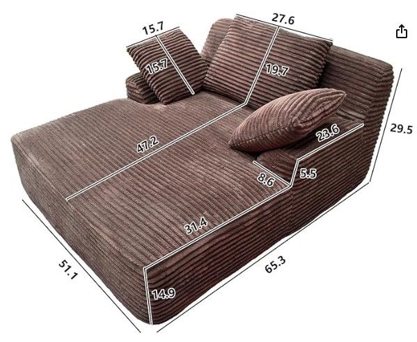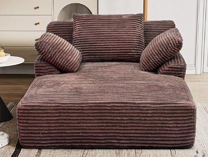 VenmoNew - Racxily 51" Chaise Lounge Chair Indoor, Oversized Fluffy Plush Corduroy Sleeper Couch, Deep Seat Reading Chair for Living Room, Brown. Still in the Box!