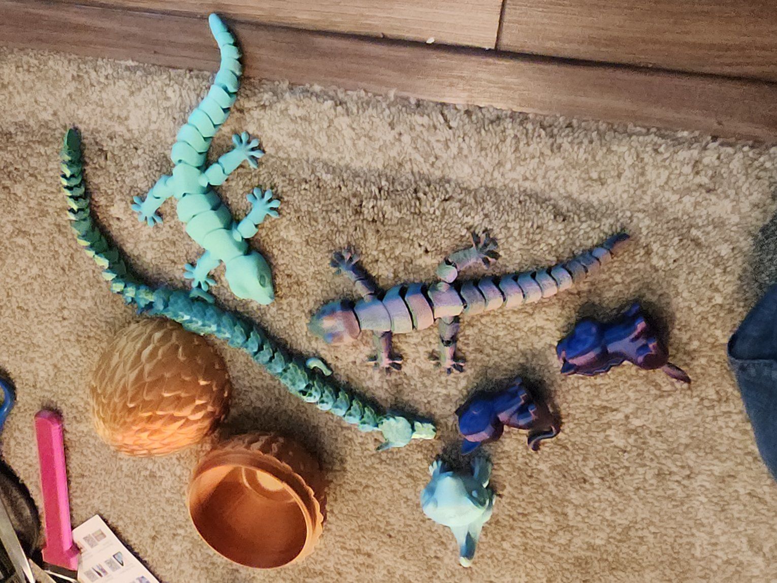3D printed animals are the best for playing with or just to have on a shelf. there also great gifts no matter what time of year or holiday, if your looking for a specific animal let me know and I'll see if I can make it. price varies by animal and size