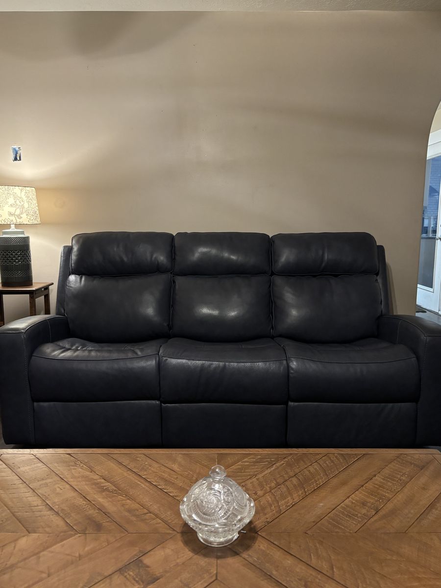VenmoBeautiful modern reclining sofa in genuine/top grain leather, designed for both comfort and convenience.