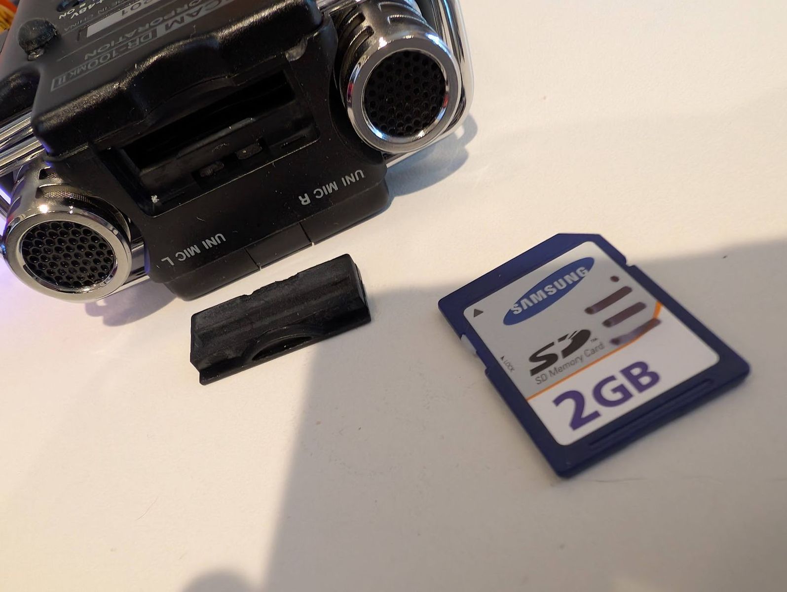 GooglePayWorking great with all original accessories and packaging! 2GB sd card, remote, internal rechargeable battery, mini usb cable, carrying case, windscreen, and line to RCA adapter all included plus original manuals. Packaging is worn, but should be all there. Mini usb cable has a bit of residue and the sd card cover is there, but not attached as pictured. Light battery corrosion in the battery compartment.