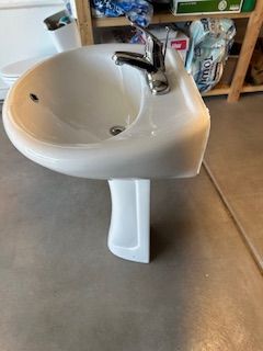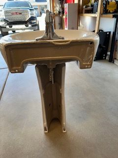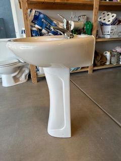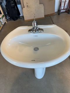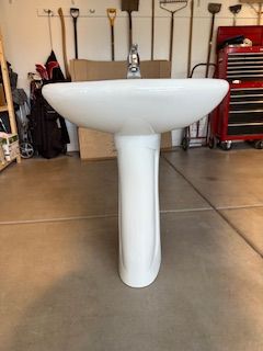 VenmoWestern brand, white pedestal sink, 20" deep, 26" wide, 33" high, with chrome single handle faucet, excellent condition