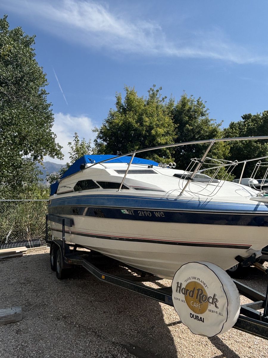 Mechanically runs great with new battery, just needs a little TLC. 260 V8, Bimini top, good tires, fish finder life jackets, bumpers. Enclosure, cockpit cover, full storage cover