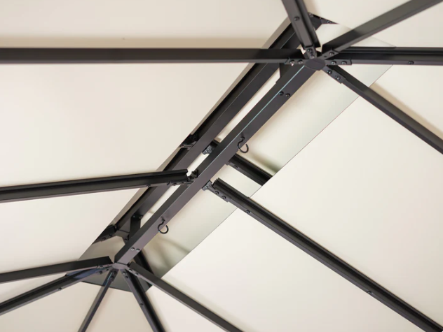 The Santa Monica's heavy-gauge aluminum frame is engineered to provide unmatched durability and stability. Powder-coated in a diamond black finish, this outdoor gazebo won’t rust, chip, peel or crack. Topped with a multi-layered aluminum composite roof, the Santa Monica not only shields you from the sun but also minimizes noise for undisturbed relaxation.