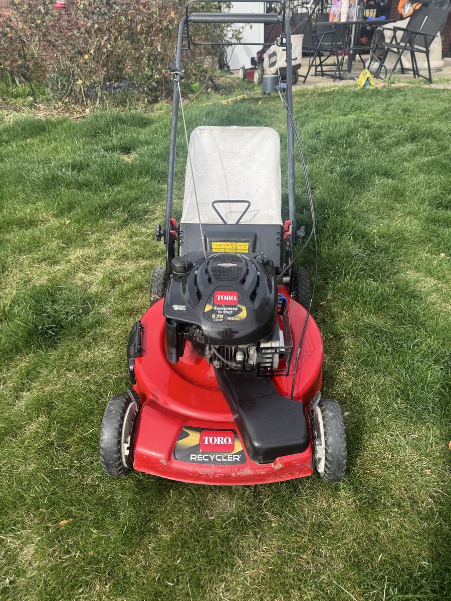 Selling my Toro 6.75HP Recycler mower with power self drive. Selling because I have 2 other mowers and don’t need this one. It has a brand new carburetor and runs great! The self propel works really good and the bag is in good shape as well. This thing fires up and is ready to be put to work this summer.