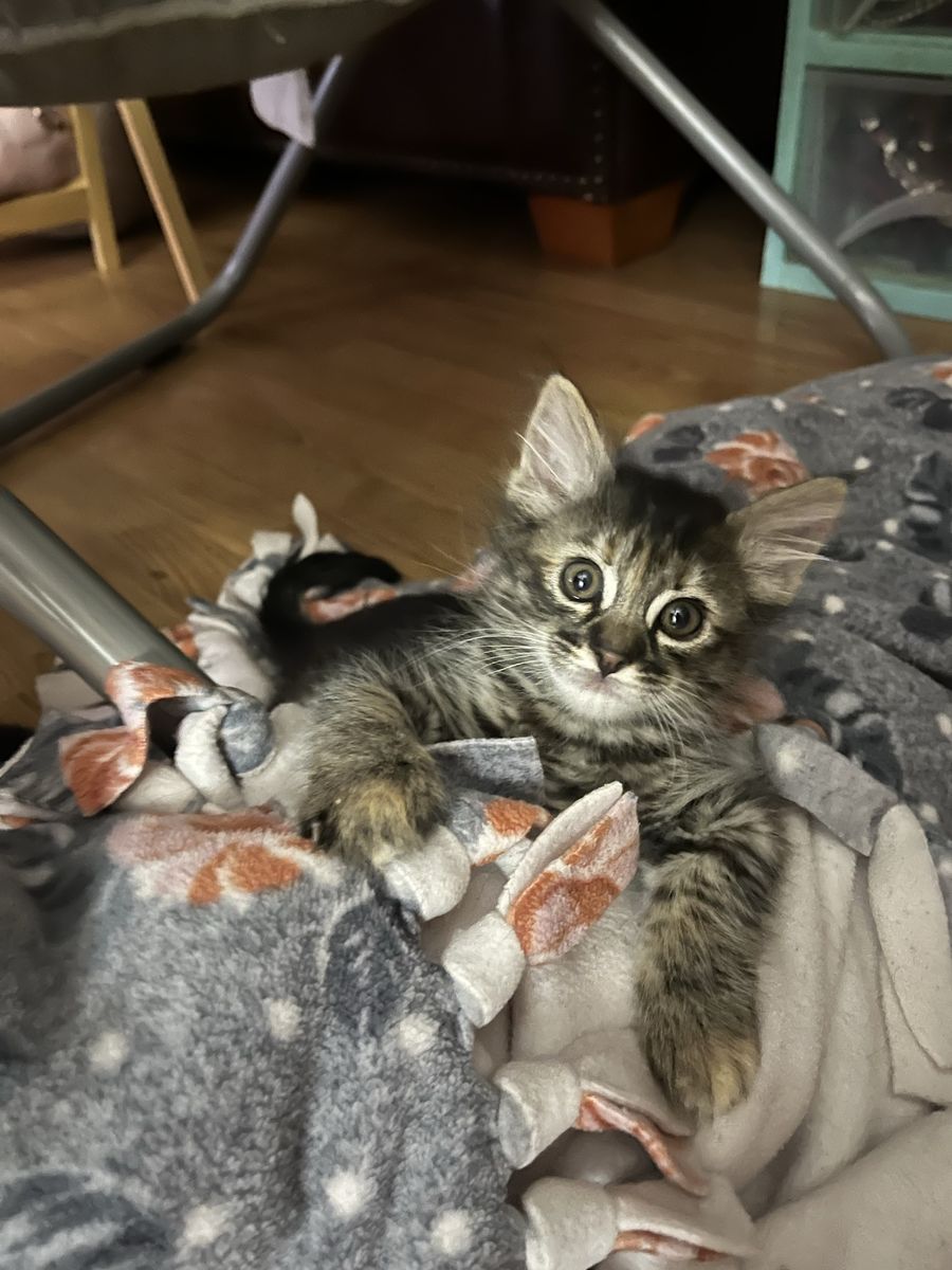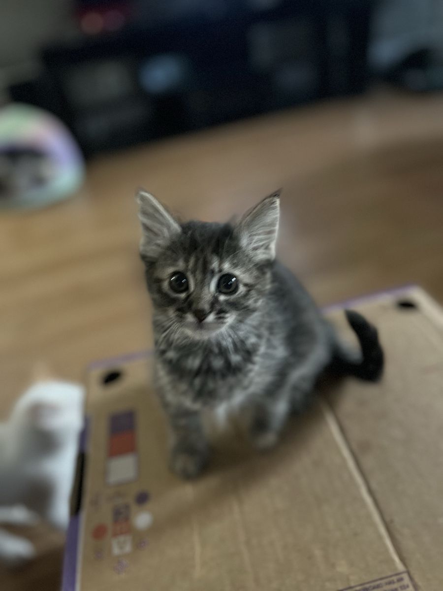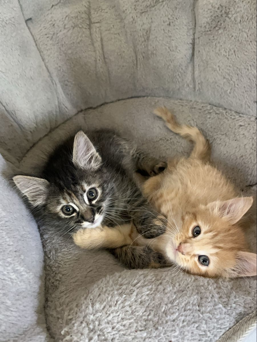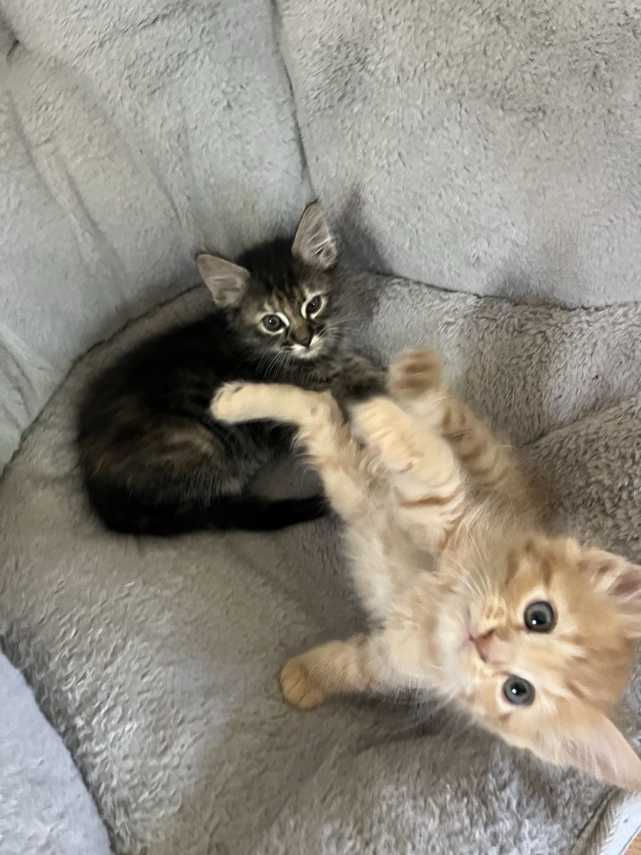 Mom is the sweetest girl around! She is a beautiful Russian blue, Dad is a handsome Siberian mainecoon, and is a sweet chill boy! This combo is extremely loving, and giant lap cats. These little babies is healthy and happy! They are considered to be hypoallergenic but everyone reacts differently!