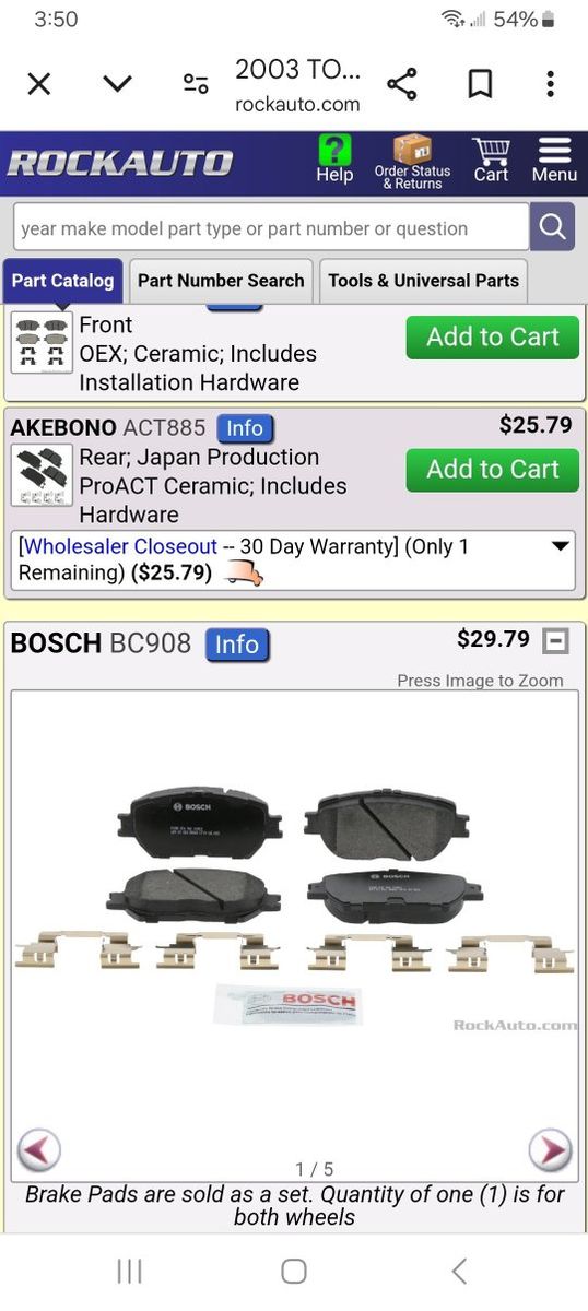 Front and rear brakes for 2002-2006 Toyota Camry. $15 for both.