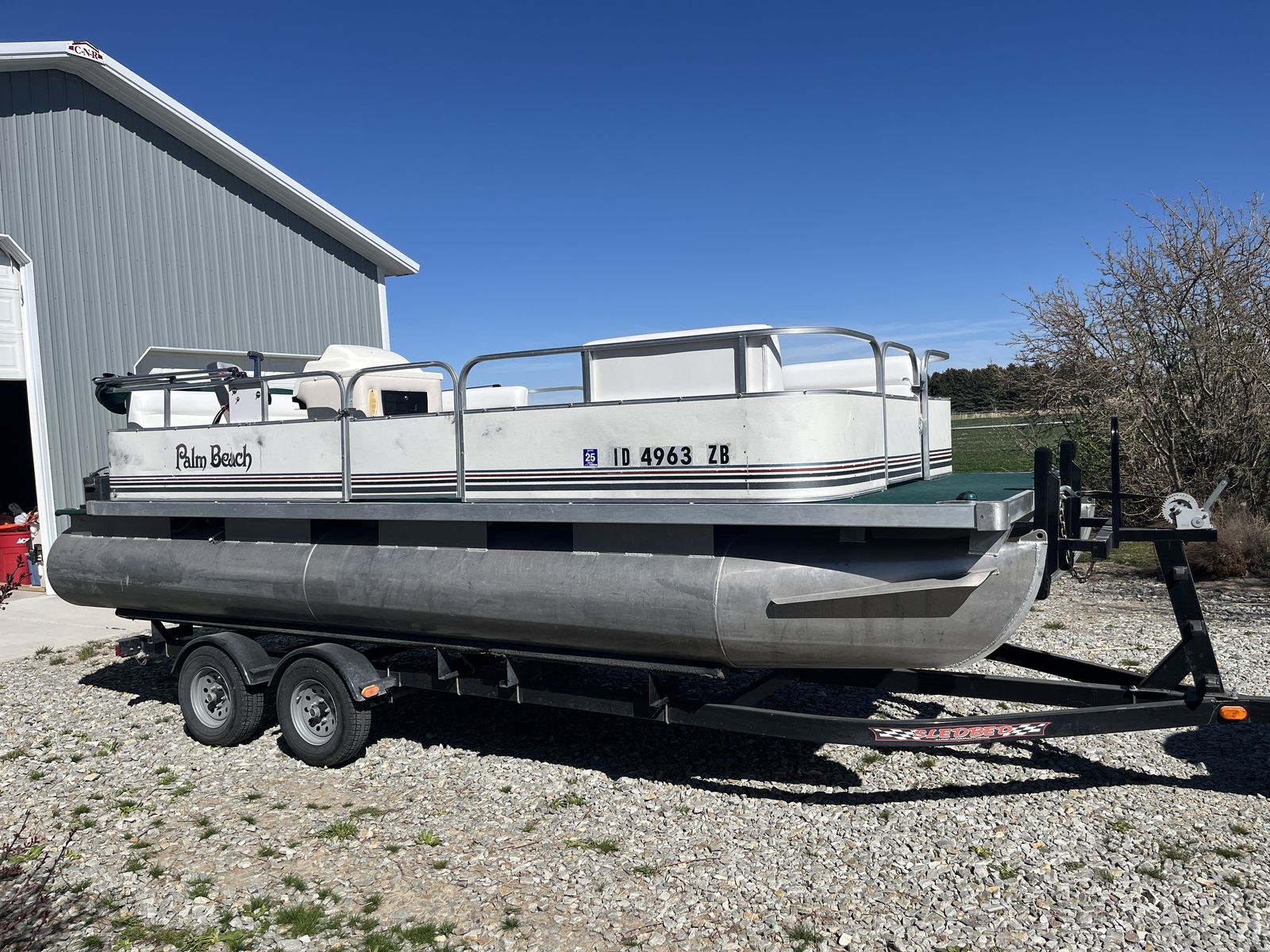 Great boat for fishing or buzzing around on the river or lake with friends and family. 1999 SBP "Palm Beach" boat with a 2010 Evinrude E-tec oil injected 2 stroke 30 HP motor. No mixing. New prop last summer. Slide out swim ladder mounted on the bow. Runs very well. Vinyl is in great shape and all welds are solid. 2020 tandem axle trailer. We have always stored it inside and it's in really good condition for its age. Normal wear that would be expected. It's been a great boat for us, but we are looking to get a little bit bigger one.