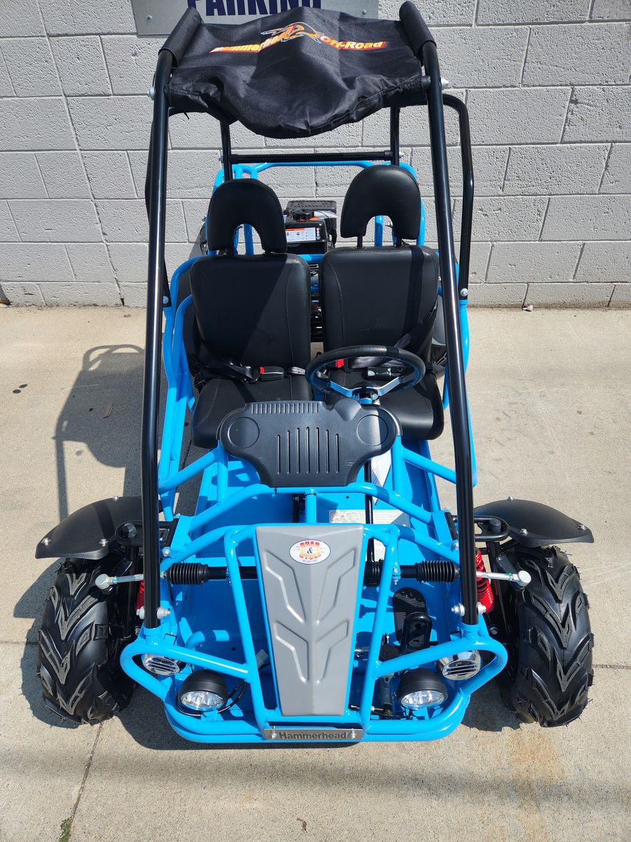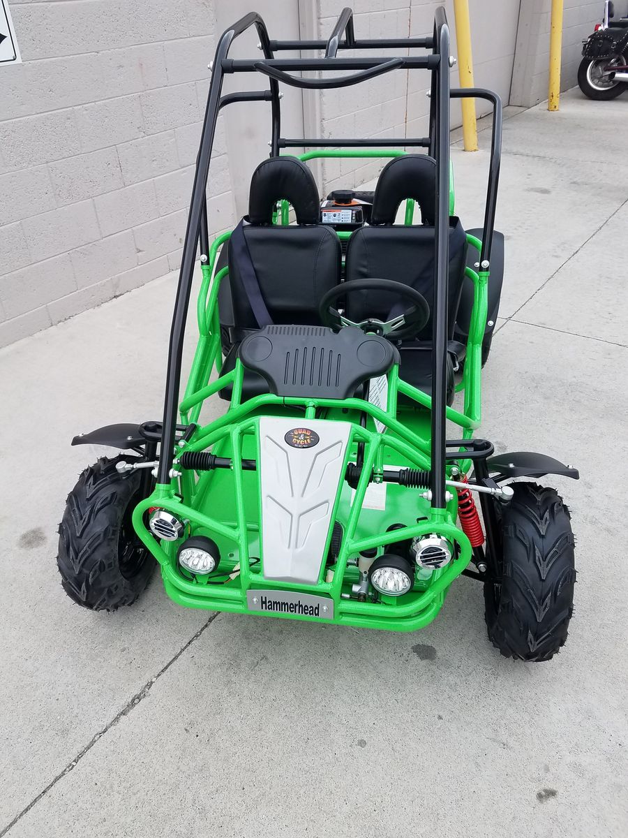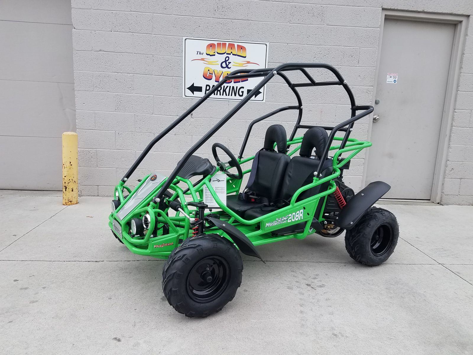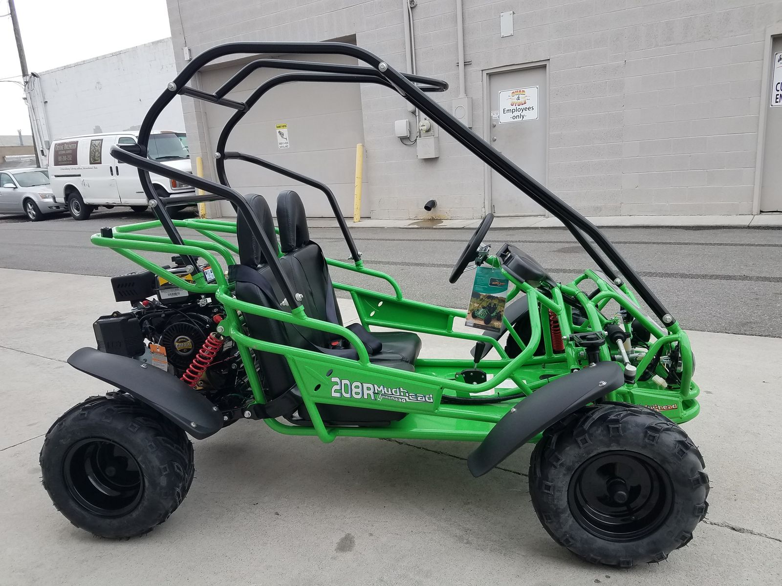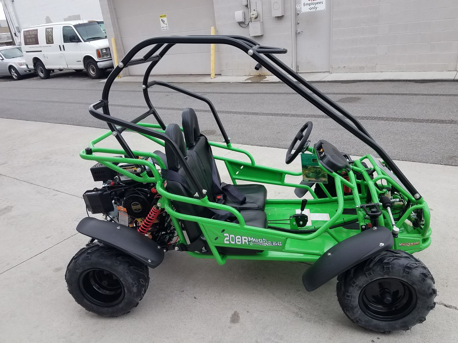 MudHead 208R comes equipped with reverse and a 208cc (6.5 HP) LCT electric-start engine utilizing a manual choke for all-weather starting. Other standard features include an adjustable driver’s seat, LED headlights, and a throttle governor.
